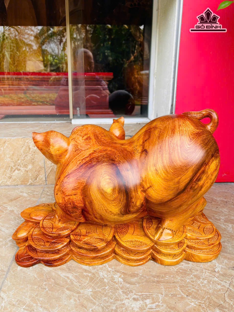 Tượng Heo Gỗ Hương Cao 29 Ngang 45 Sâu 20 (cm) - 12kg