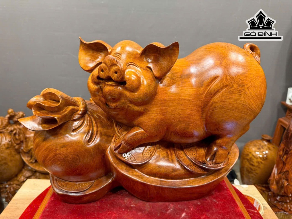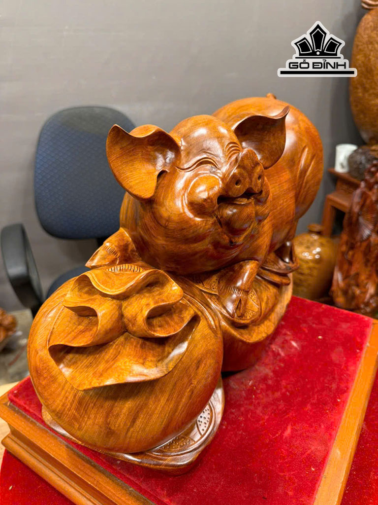 Tượng Heo Gỗ Hương Cao 30 Ngang 43 Sâu 20 (cm)