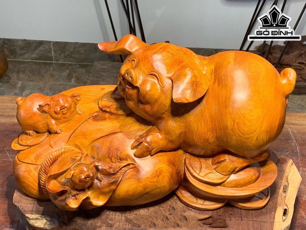 Tượng Heo Gỗ Hương Cao 30 Ngang 58 Sâu 38 (cm)