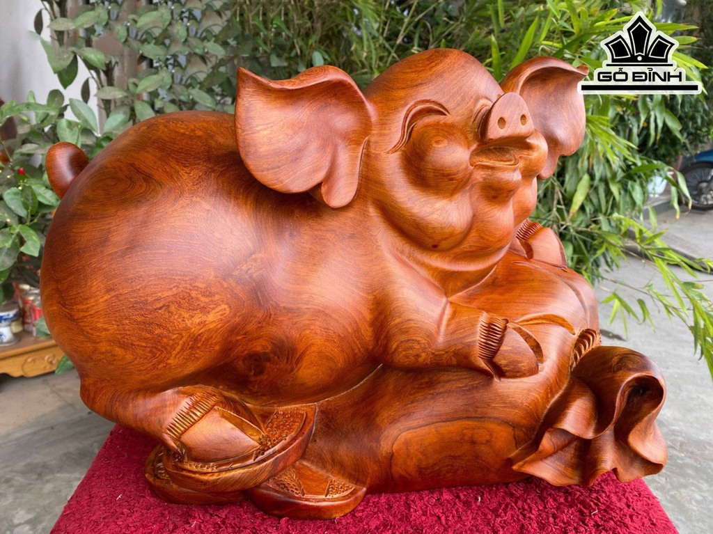 Tượng Heo Gỗ Hương Cao 31 Ngang 43 Sâu 26 (cm)