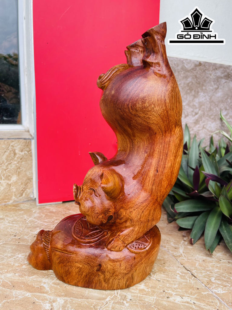 Tượng Heo Gỗ Hương Cao 33 Ngang 20 Sâu 13 (cm)