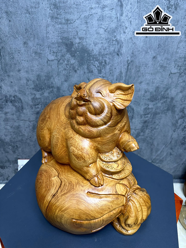 Tượng Heo Gỗ Hương Cao 40 Ngang 45 Sâu 30 (cm)