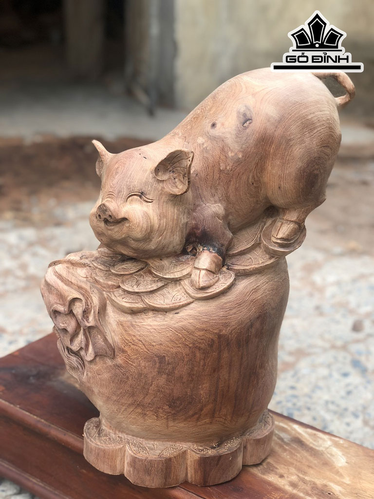 Tượng Heo Gỗ Hương Cao 48 Ngang 35 Sâu 28 (cm)