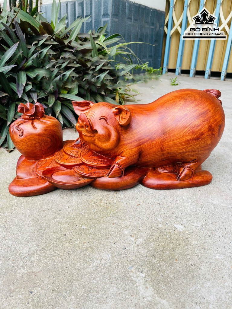 Tượng Heo Gỗ Hương Việt Cao 18 Ngang 42 Sâu 18 (cm)