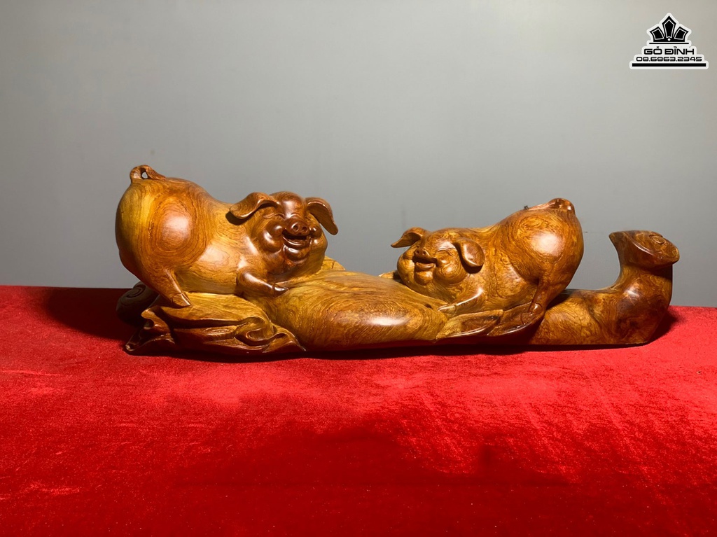 Tượng Heo Gỗ Hương Việt Cao 19 Ngang 55 Sâu 19 (cm)
