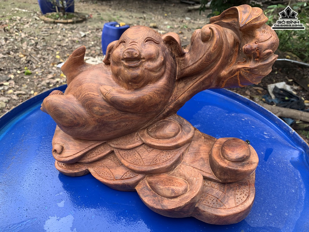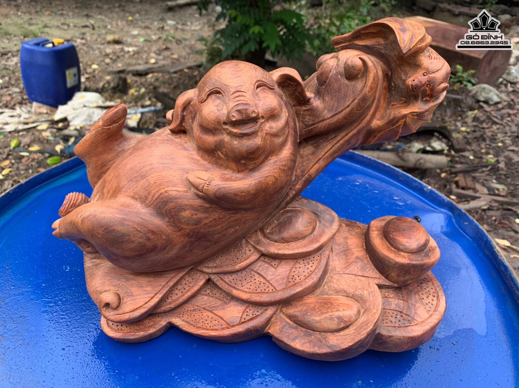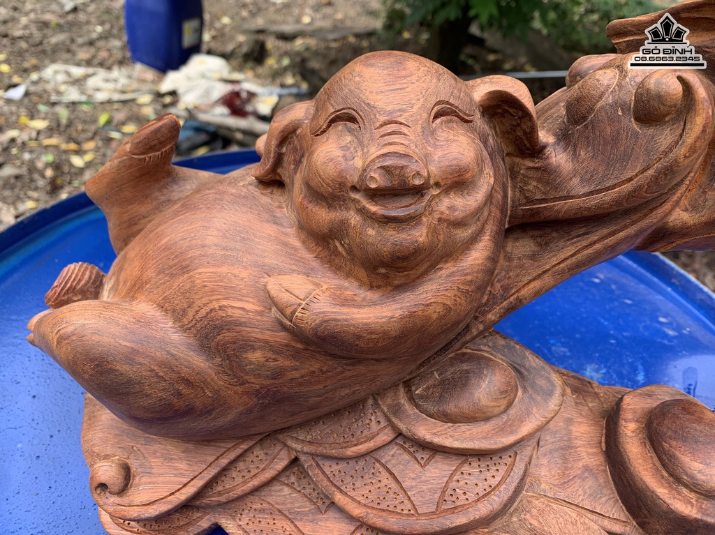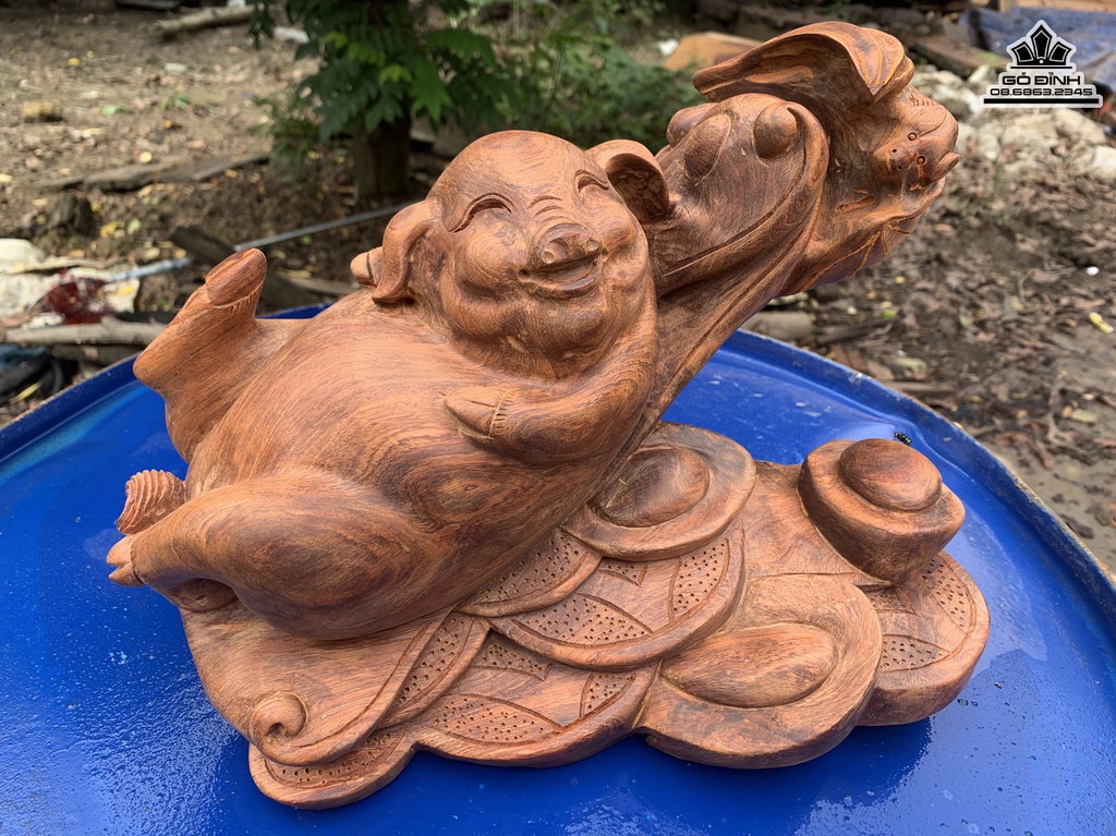 Tượng Heo Gỗ Hương Việt Cao 24 Ngang 32 Sâu 18 (cm)