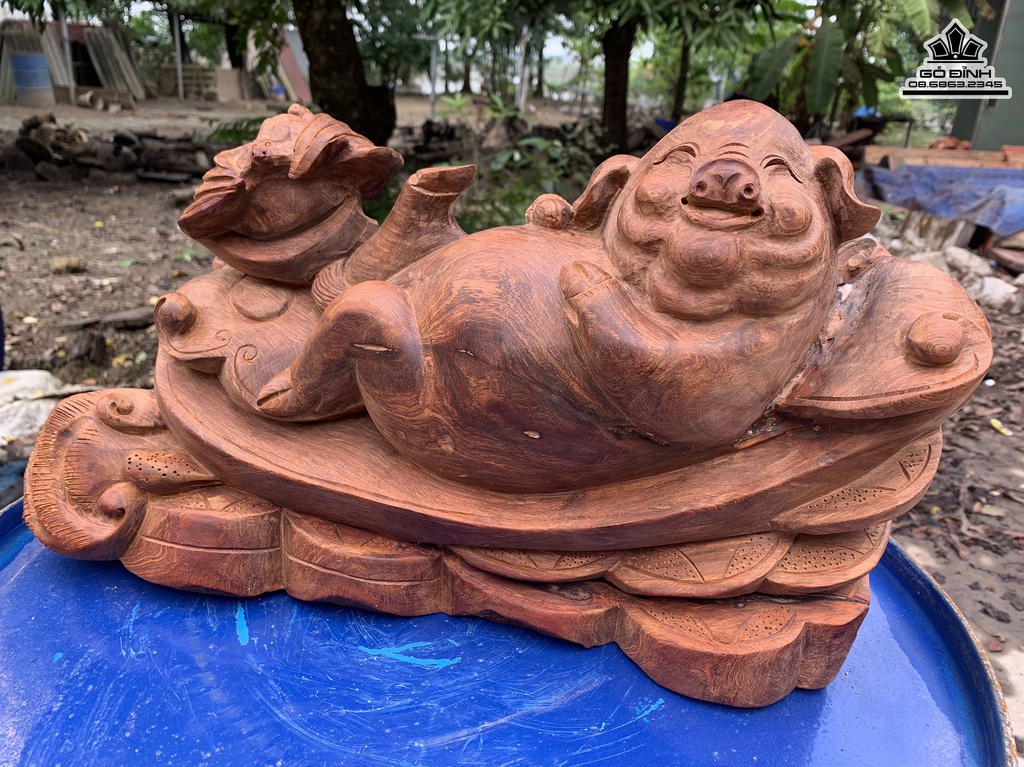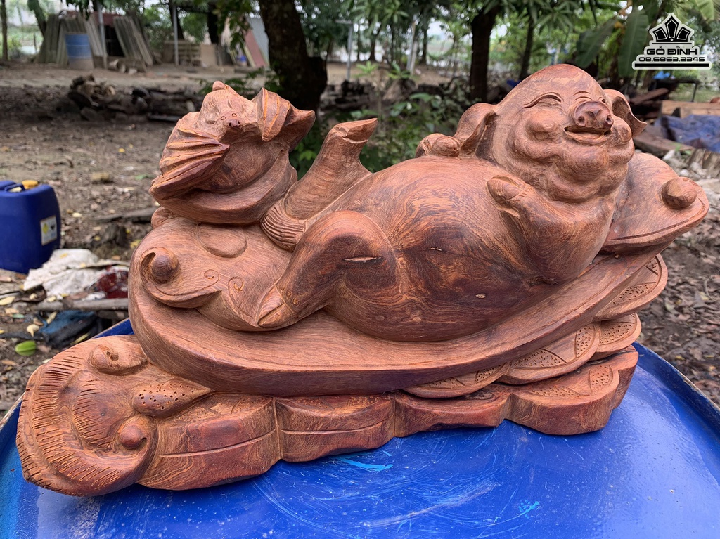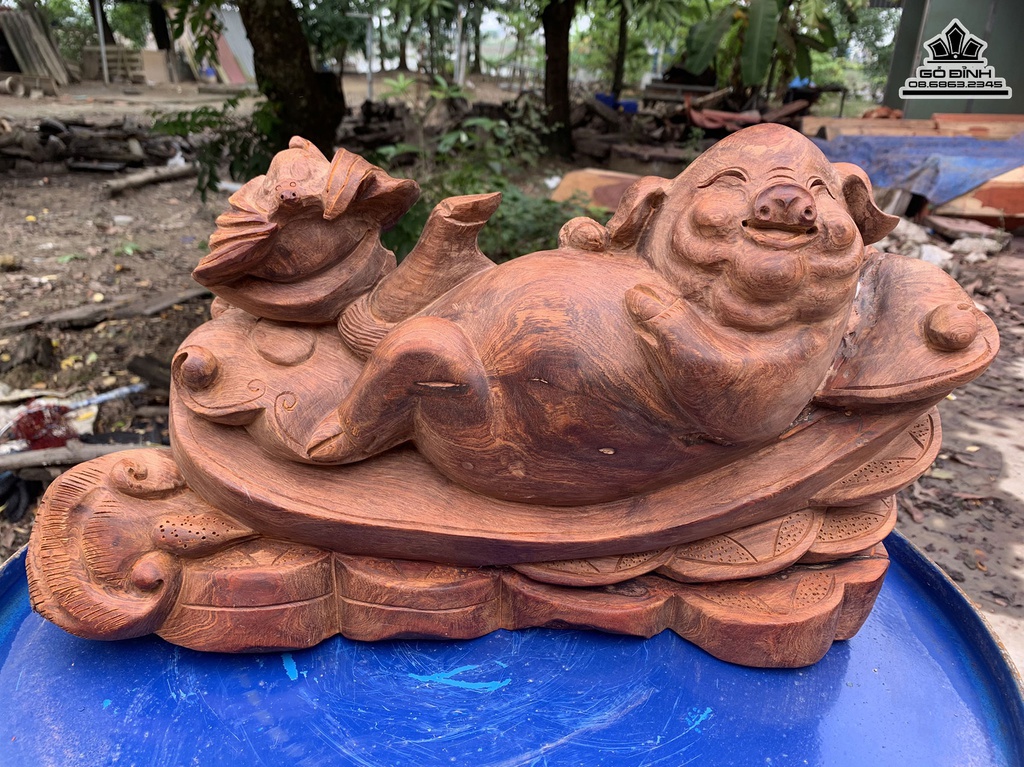 Tượng Heo Gỗ Hương Việt Cao 26 Ngang 54 Sâu 24 (cm)