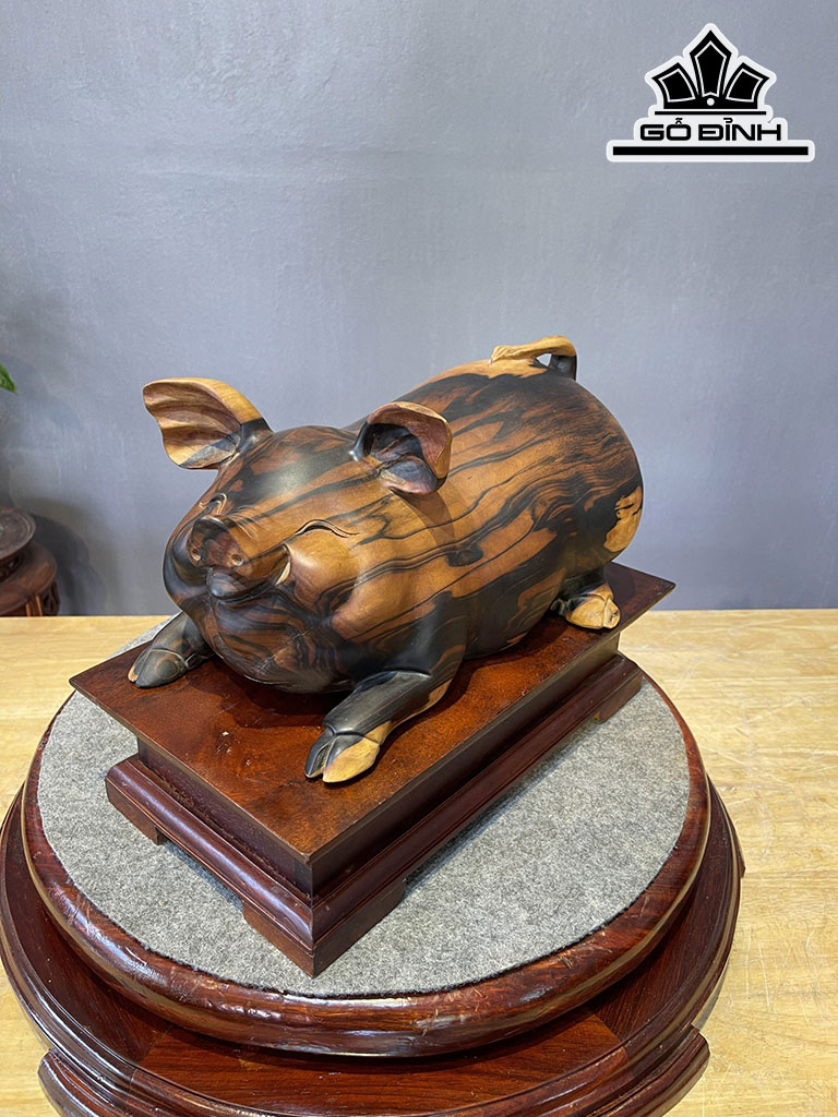 Tượng Heo Gỗ Mun Hoa Cao 17 Ngang 40 Sâu 20 (cm)