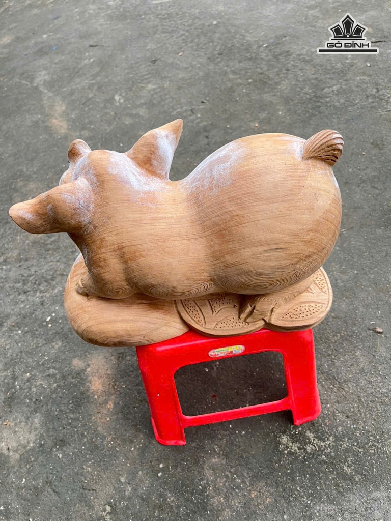 Tượng Heo Gỗ Ngọc Am Cao 23 Ngang 34 Sâu 20 (cm)