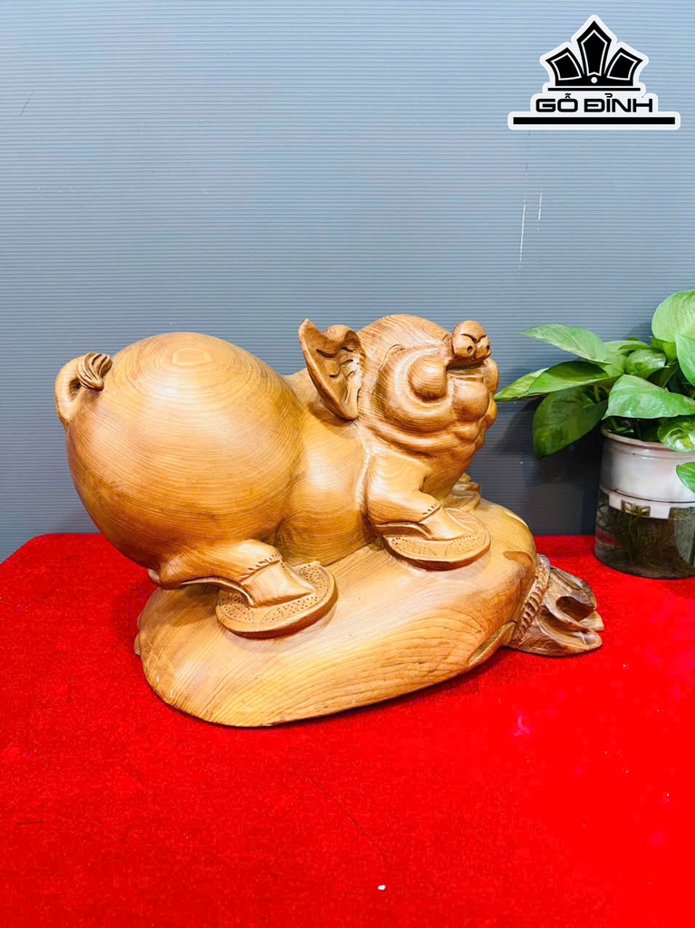 Tượng Heo Gỗ Ngọc Am Cao 26 Ngang 22 Sâu 38 (cm)