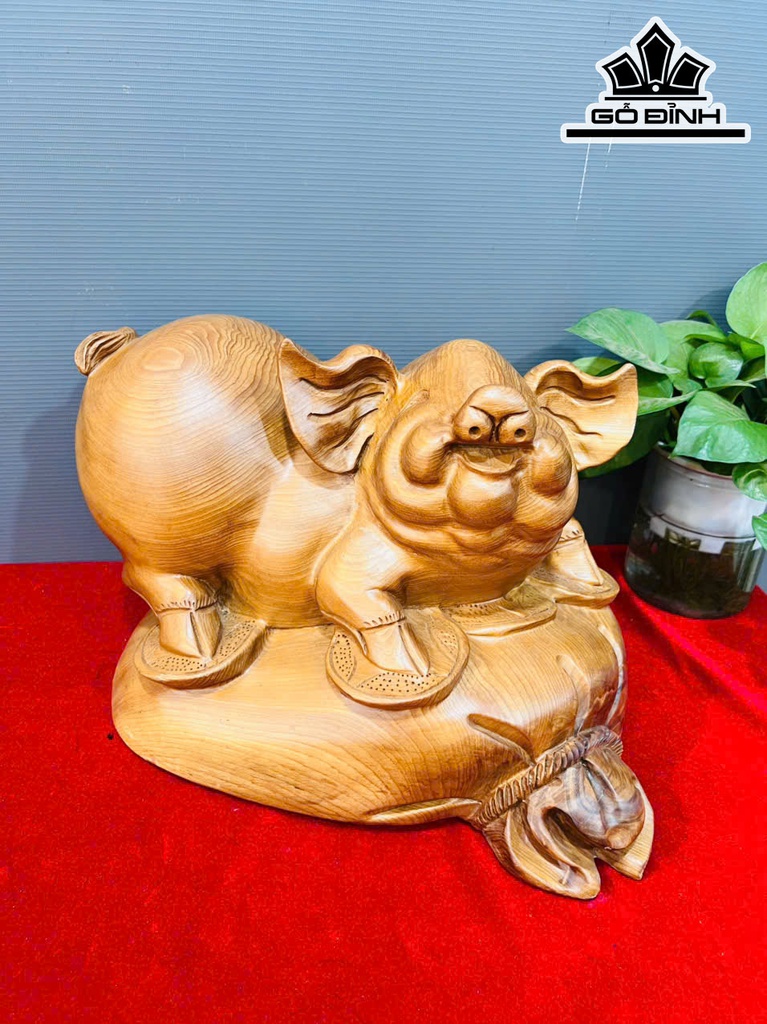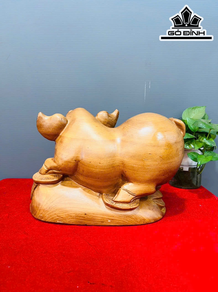 Tượng Heo Gỗ Ngọc Am Cao 26 Ngang 22 Sâu 38 (cm)