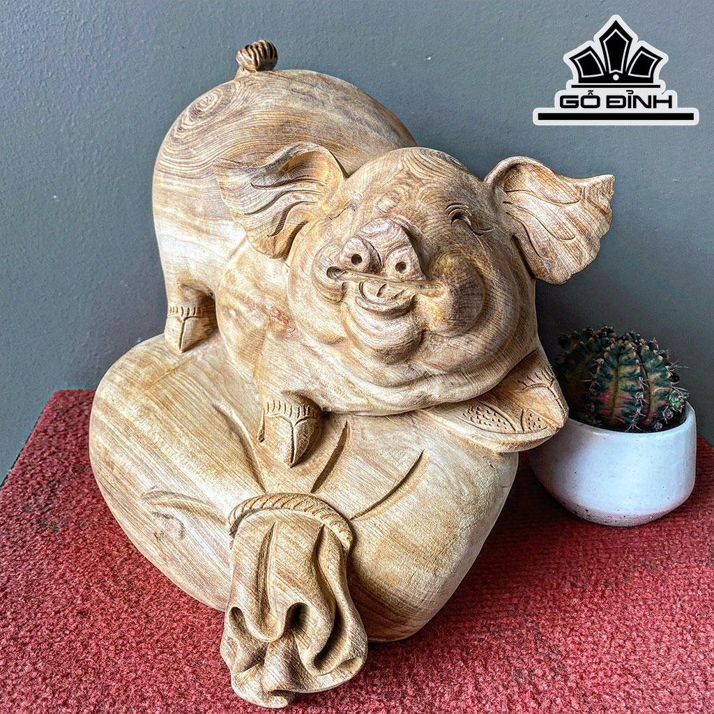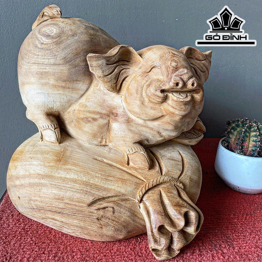 Tượng Heo Gỗ Ngọc Am Cao 27 Ngang 26 Sâu 24 (cm)