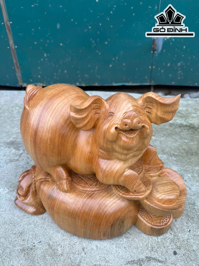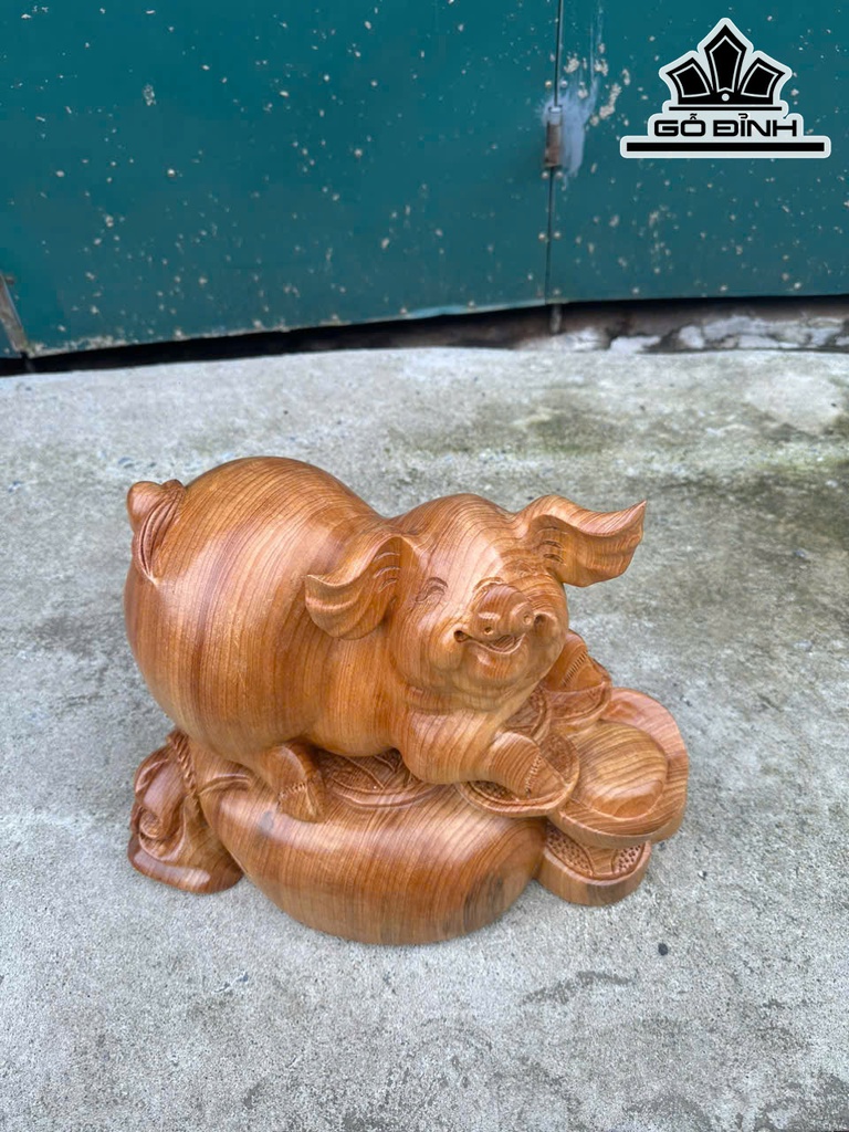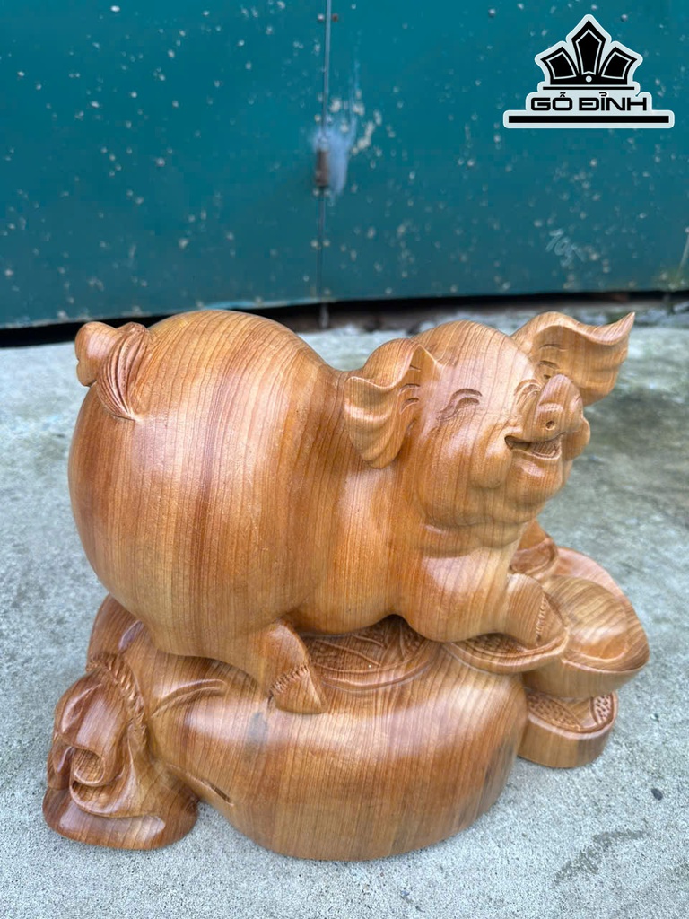Tượng Heo Gỗ Ngọc Am Cao 30 Ngang 40 Sâu 21 (cm)