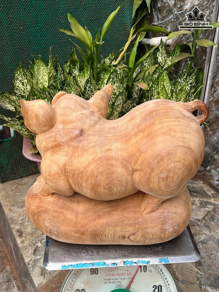 Tượng Heo Gỗ Ngọc Am Cao 31 Ngang 38 Sâu 21 (cm)