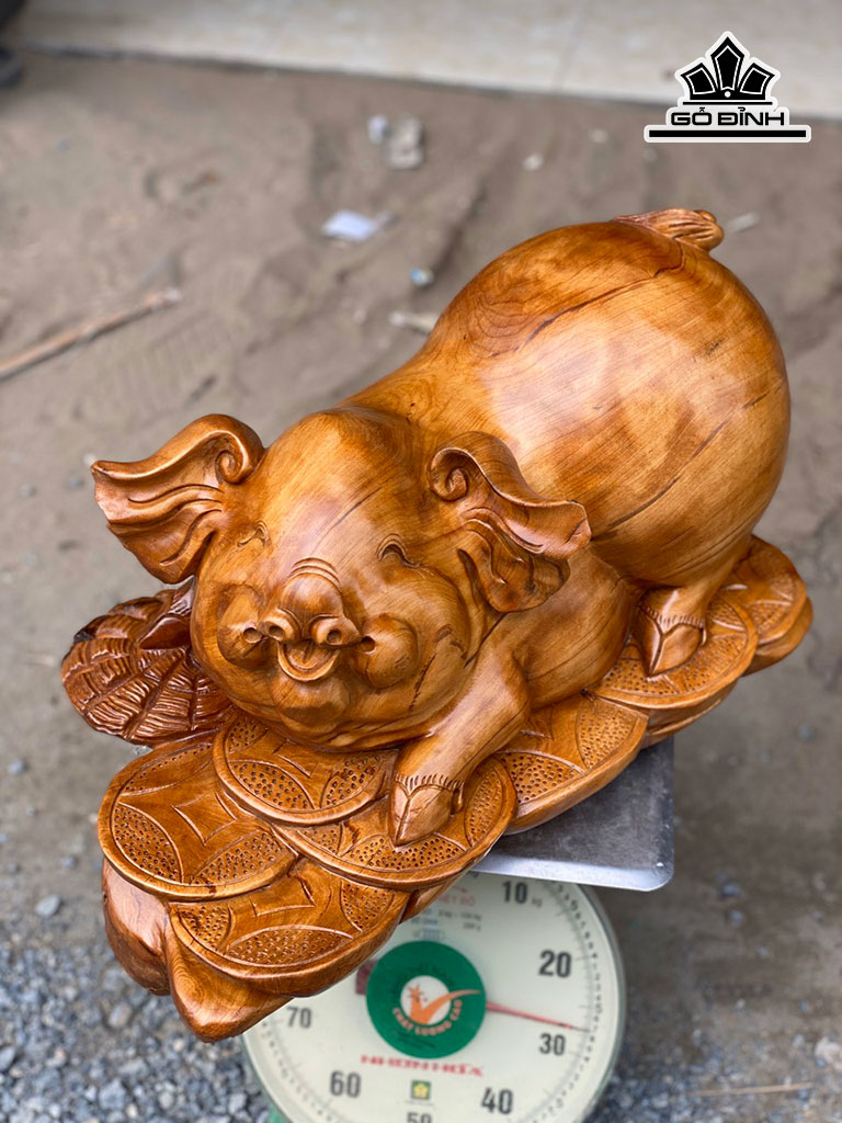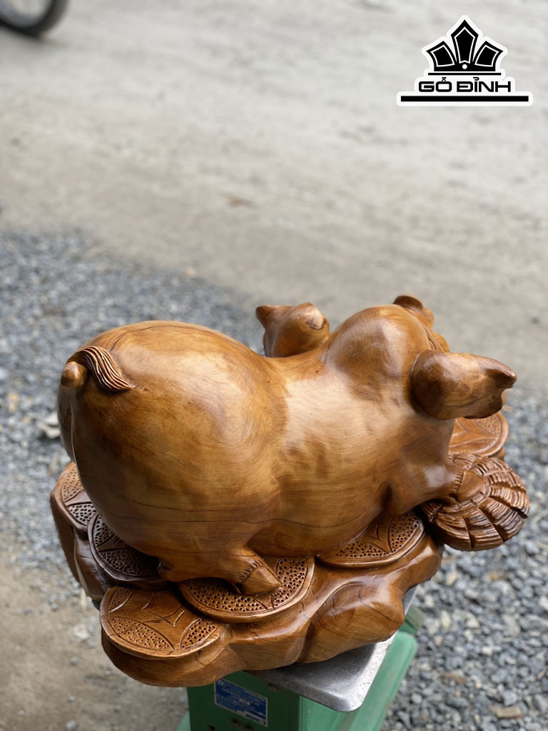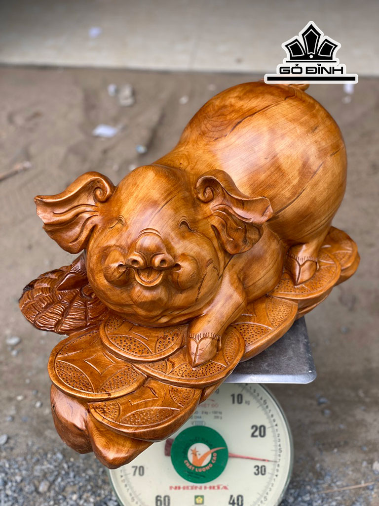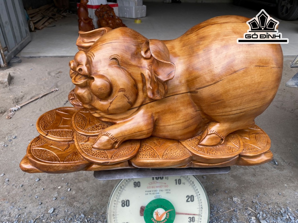 Tượng Heo Gỗ Ngọc Am Cao 34 Ngang 56 Sâu 34 (cm)