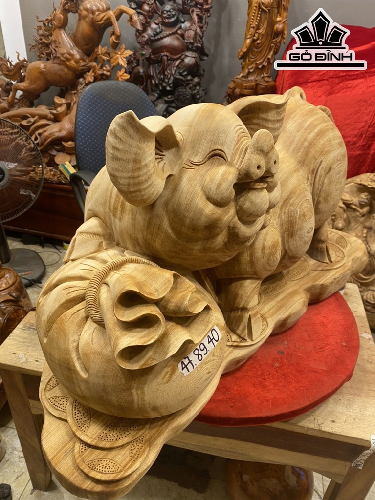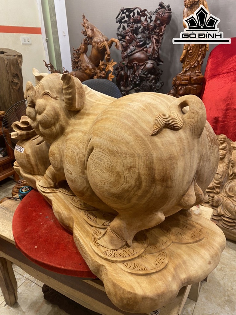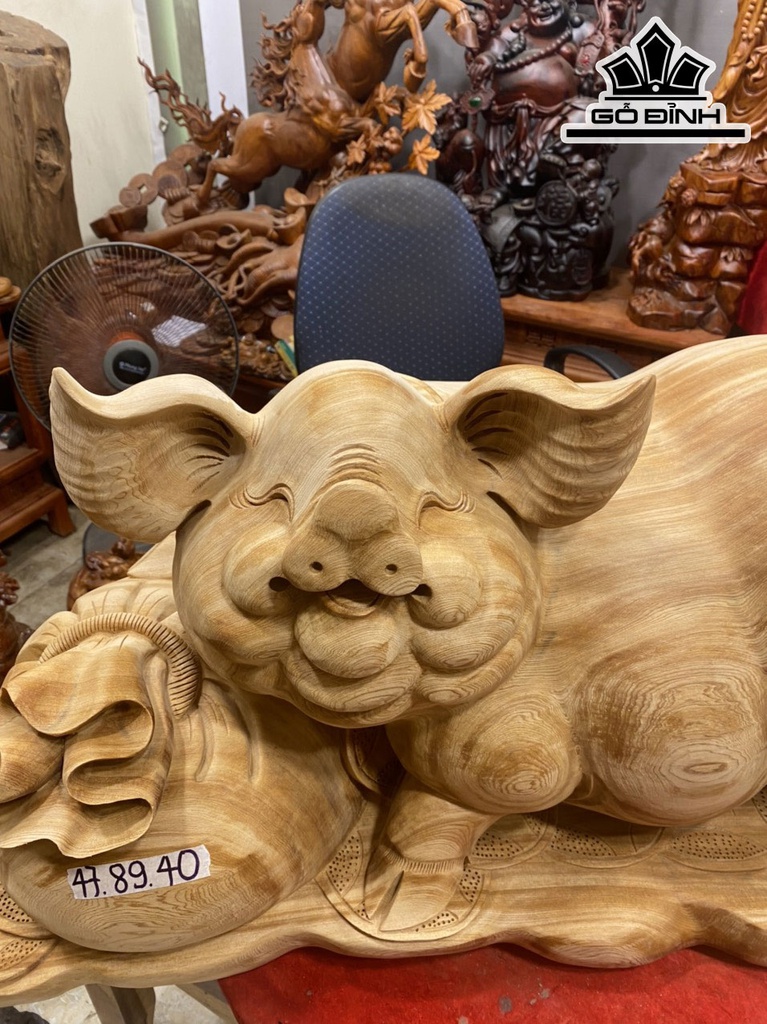 Tượng Heo Gỗ Ngọc Am Cao 47 Ngang 89 Sâu 40 (cm) - 68kg