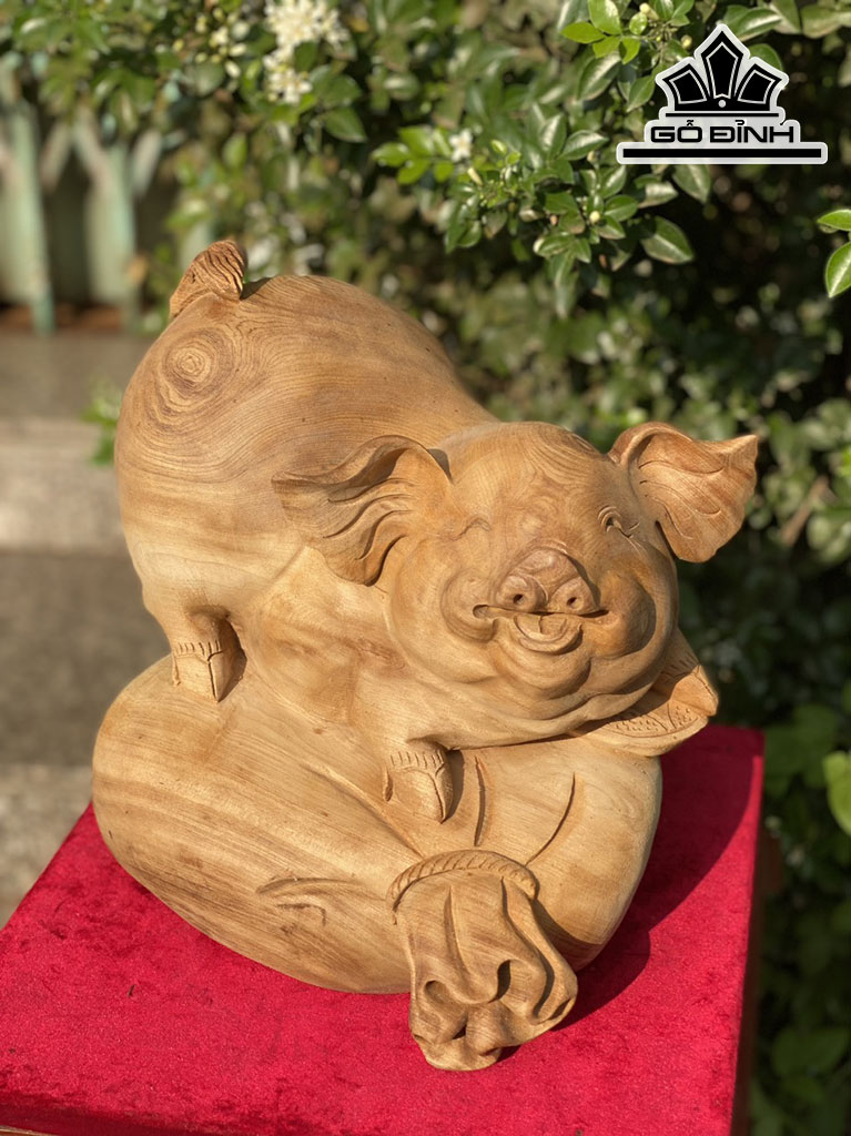Tượng Heo Gỗ Ngọc Am Ngang 30 Cao 28 Sâu 23 (cm)