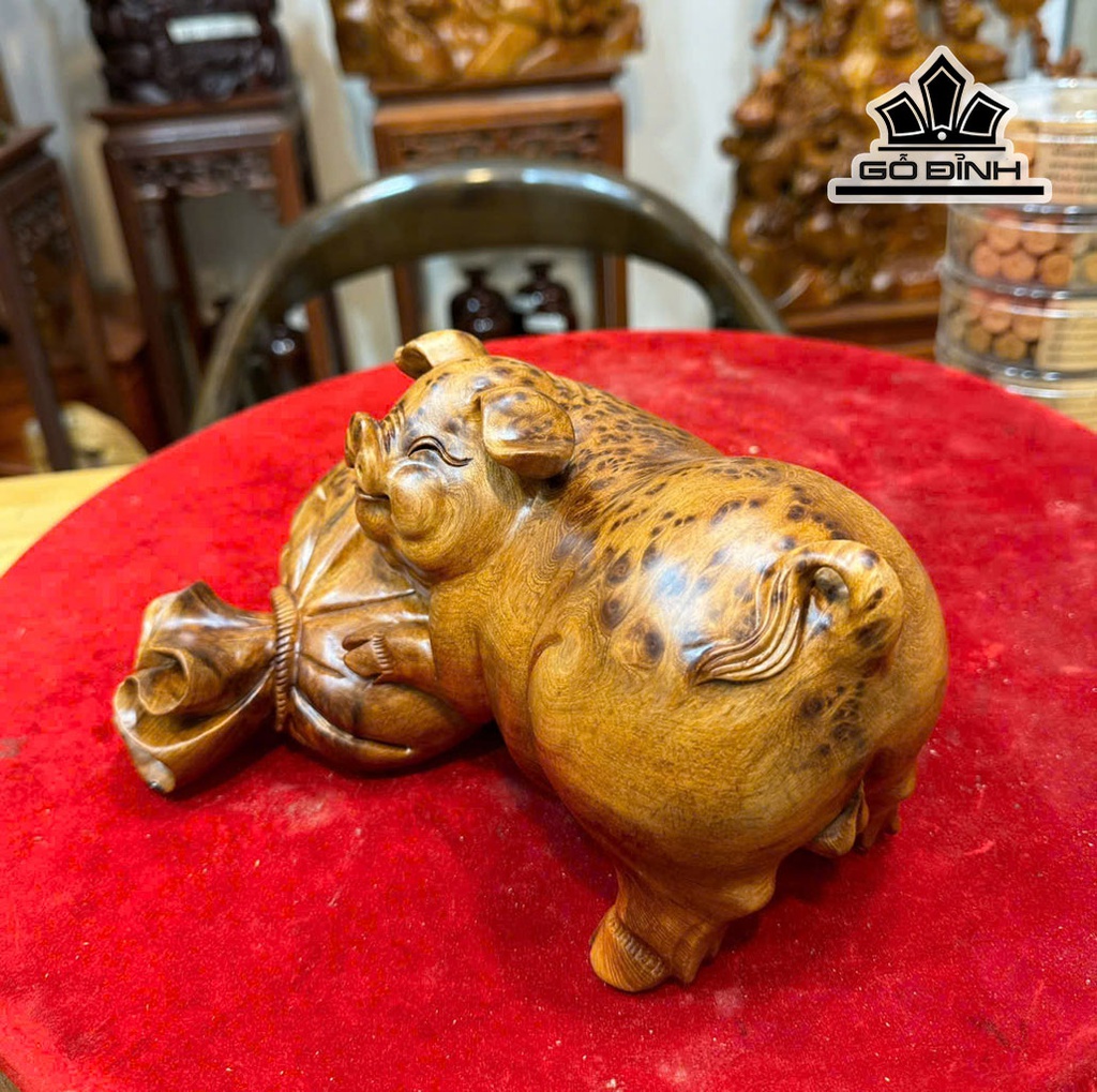 Tượng Heo Gỗ Nu Ngọc Am Cao 12 Ngang 24 Sâu 16 (cm)