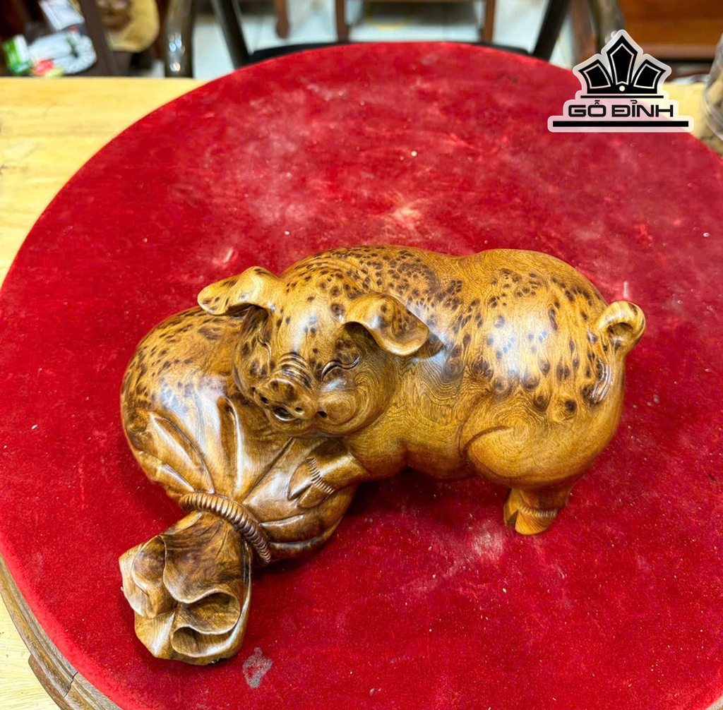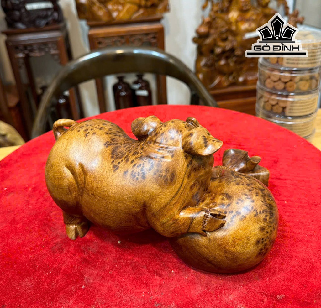 Tượng Heo Gỗ Nu Ngọc Am Cao 12 Ngang 24 Sâu 16 (cm)