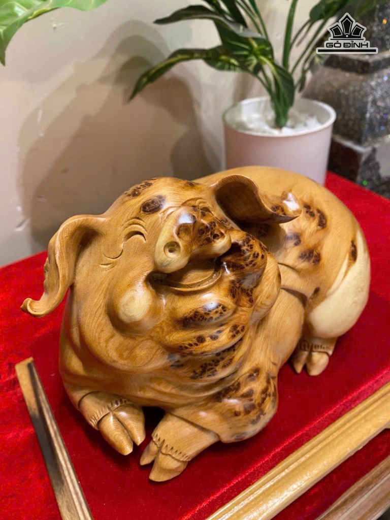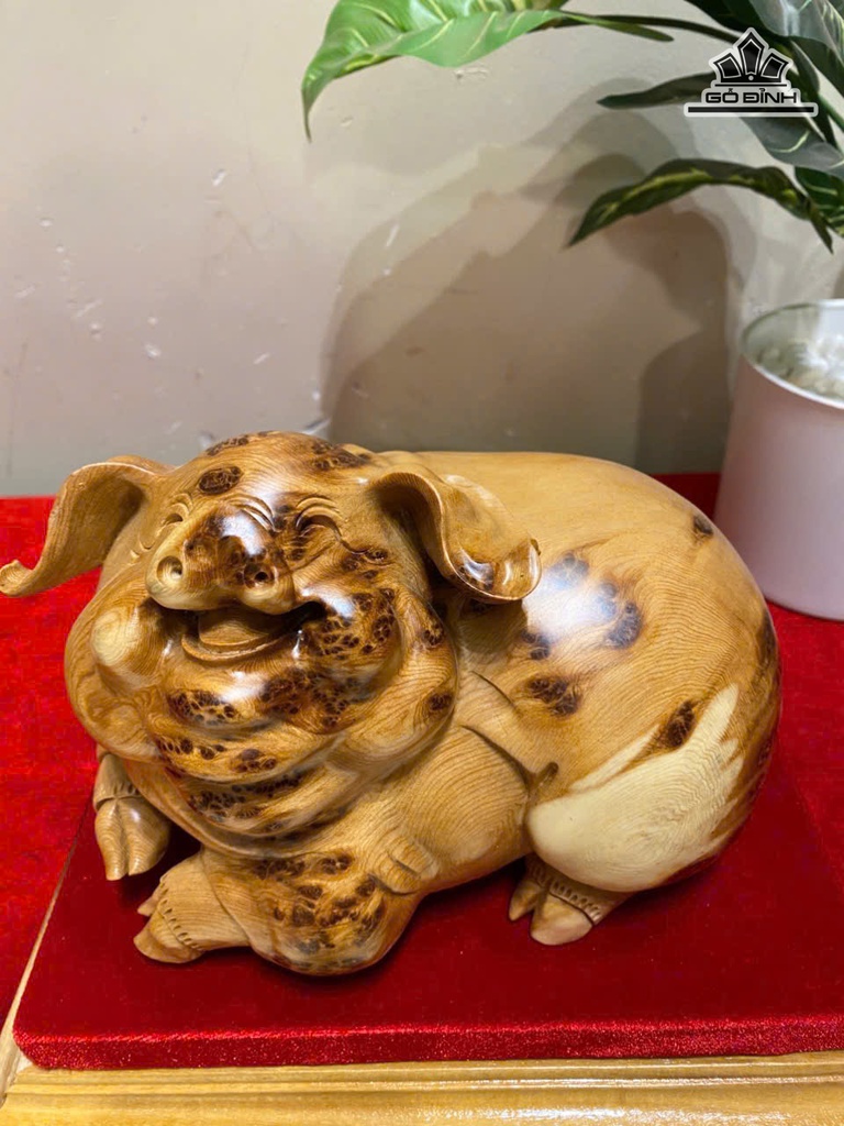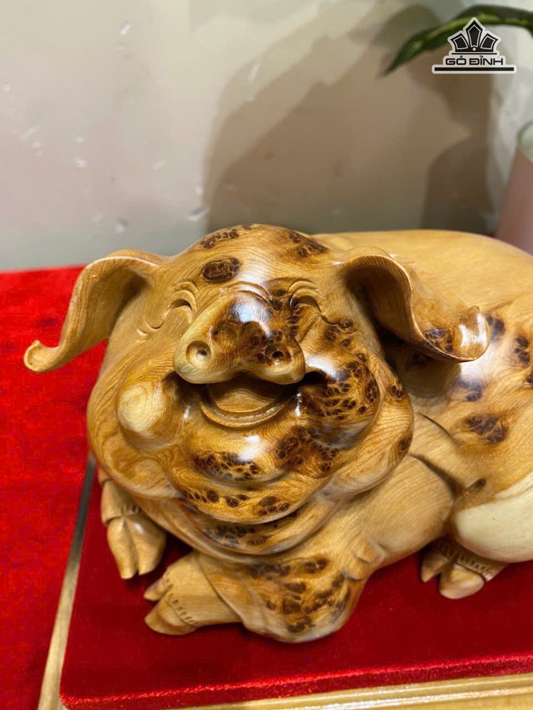 Tượng Heo Gỗ Nu Ngọc Am Cao 15 Ngang 20 Sâu 14 (cm)