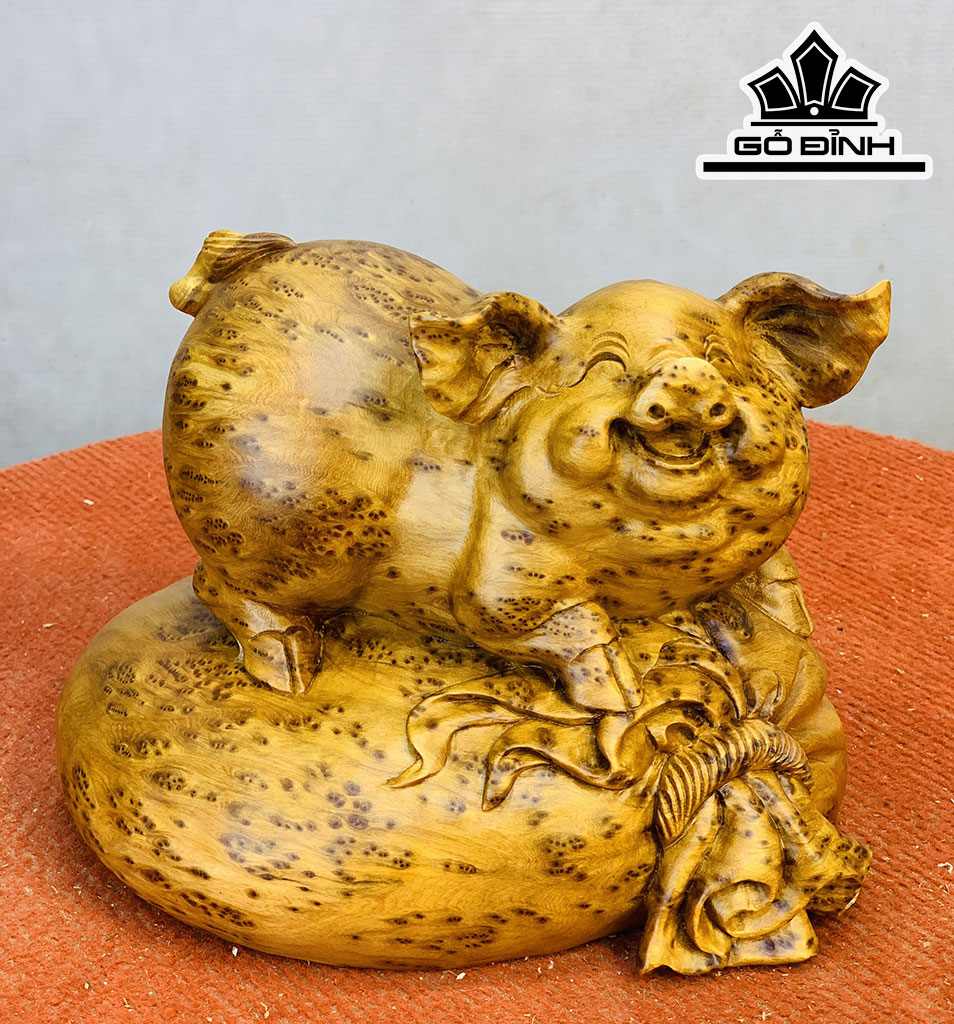 Tượng Heo Gỗ Nu Ngọc Am Cao 17 Ngang 26 Sâu 16,5 (cm)