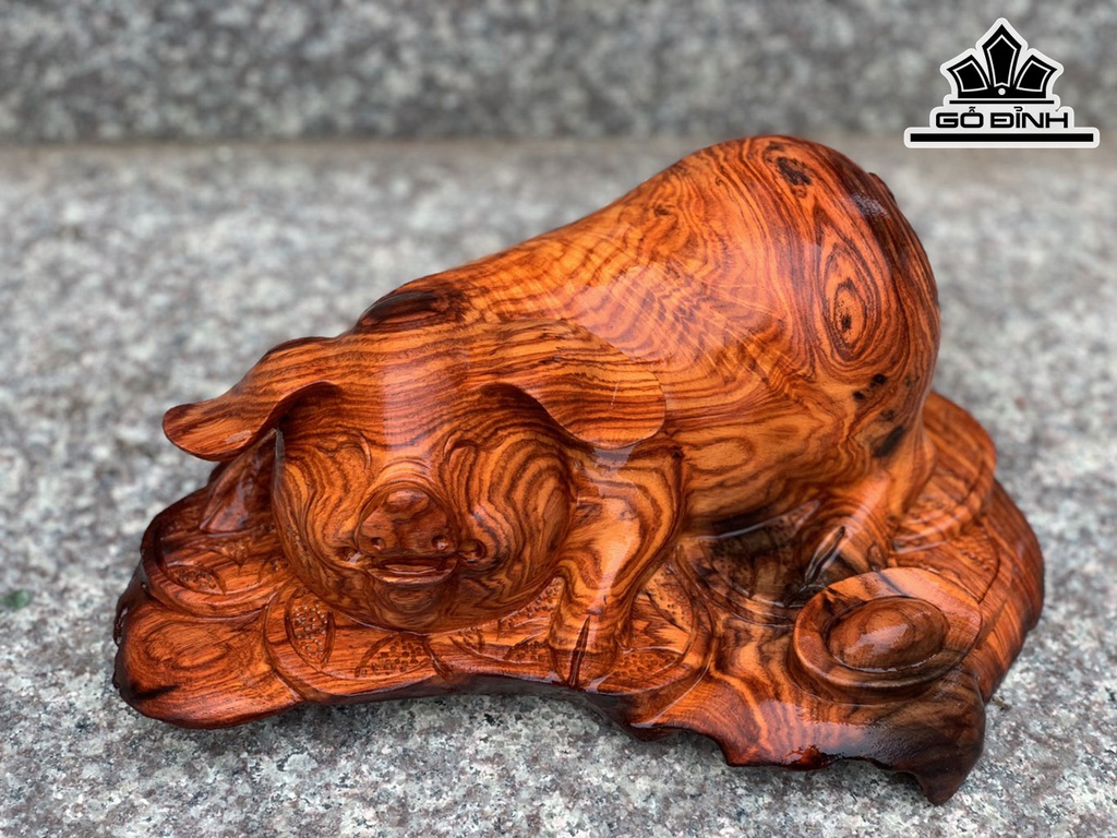 Tượng Heo Gỗ Trắc Cao 13 Ngang 29 Sâu 22 (cm)