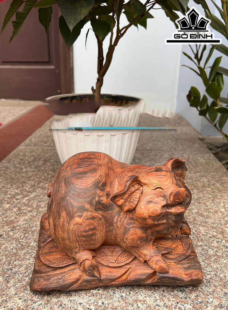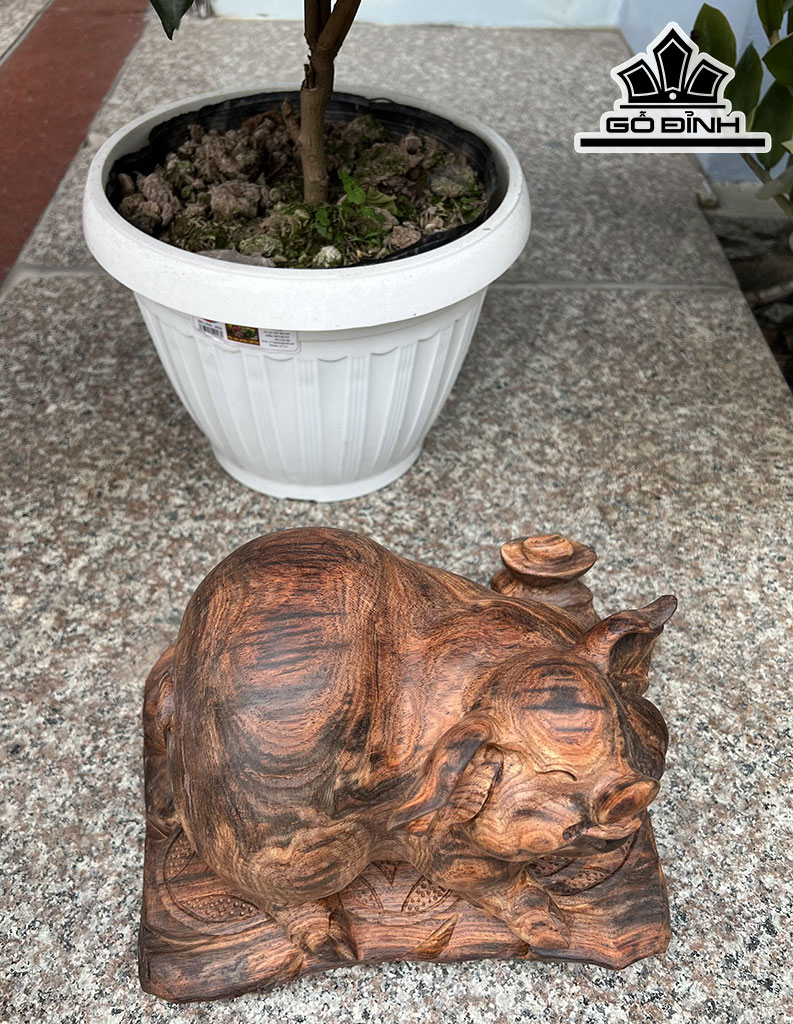 Tượng Heo Gỗ Trắc Cao 17 Ngang 23 Sâu 20 (cm)