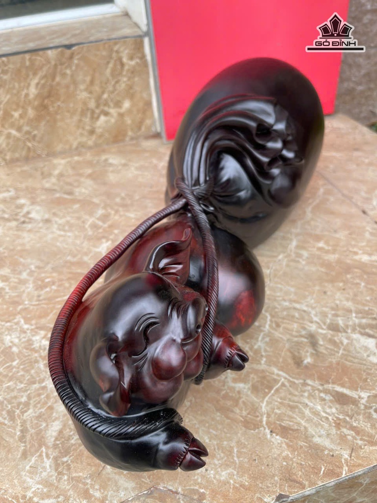 Tượng Heo Gỗ Trắc Cao 17 Ngang 55 Sâu 15 (cm) - 5kg