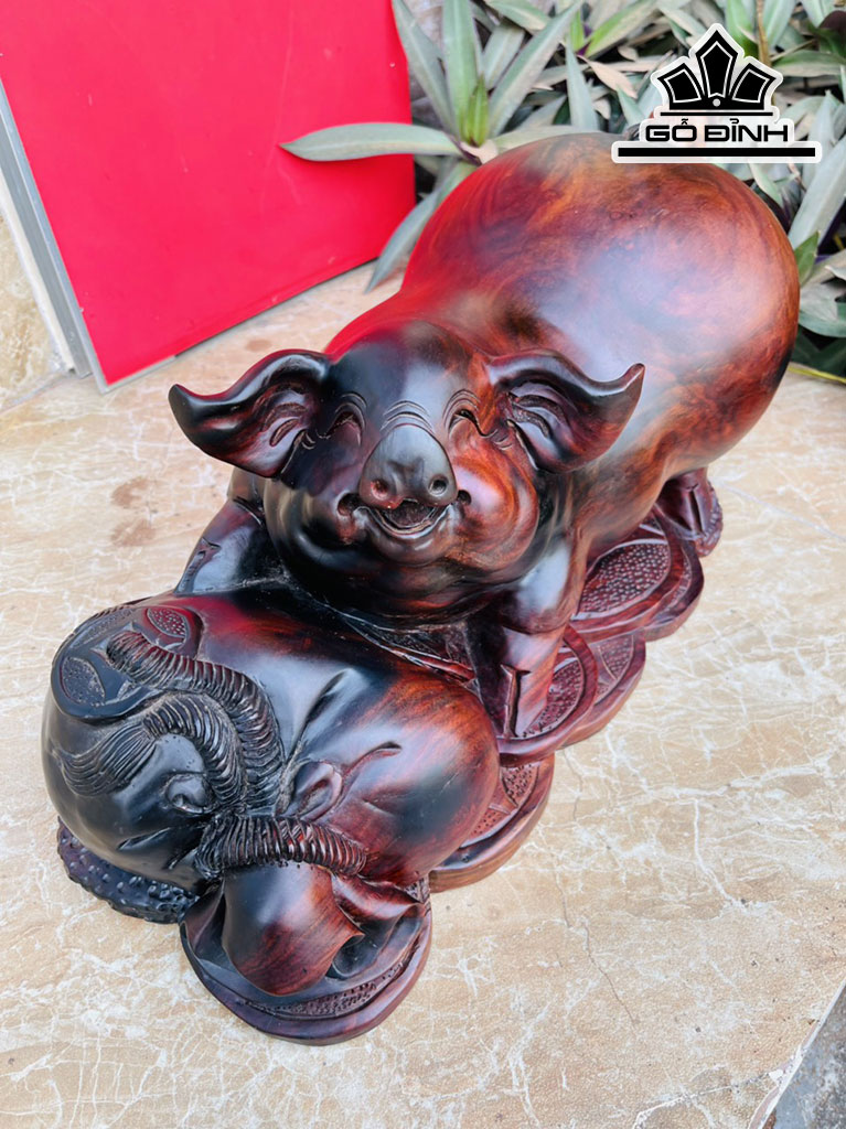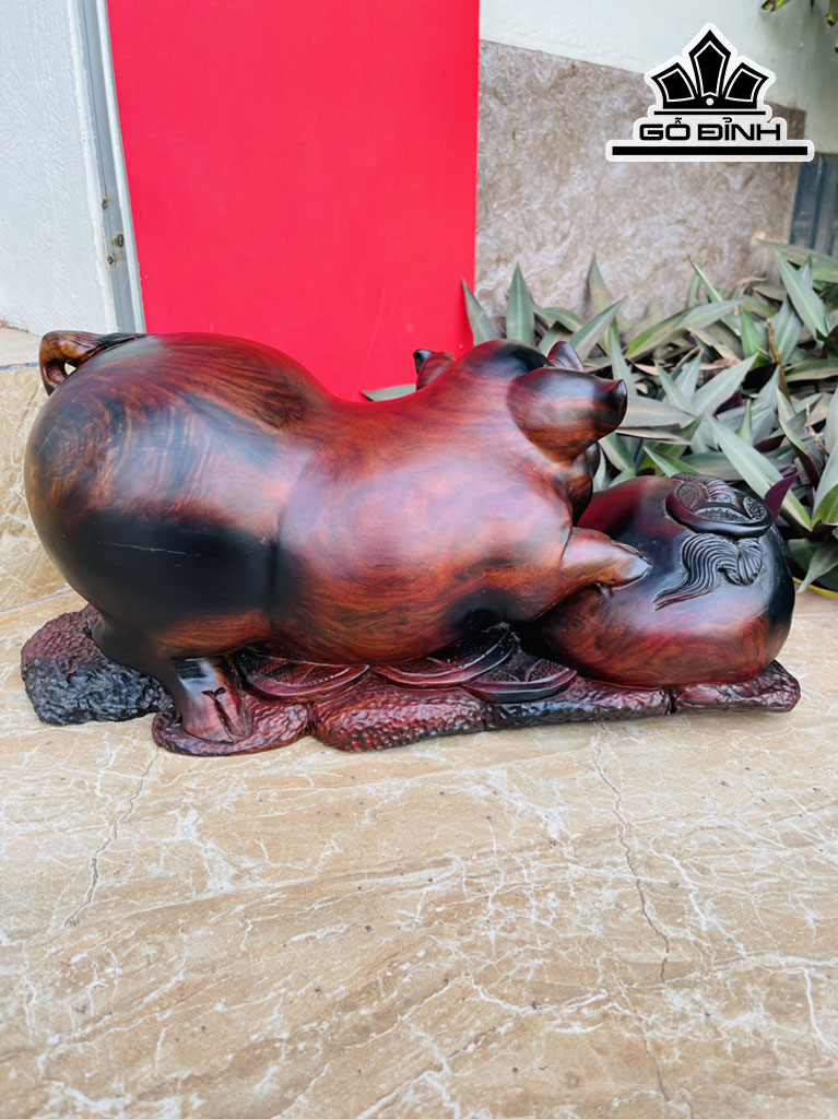 Tượng Heo Gỗ Trắc Cao 21 Ngang 45 Sâu 20 (cm)