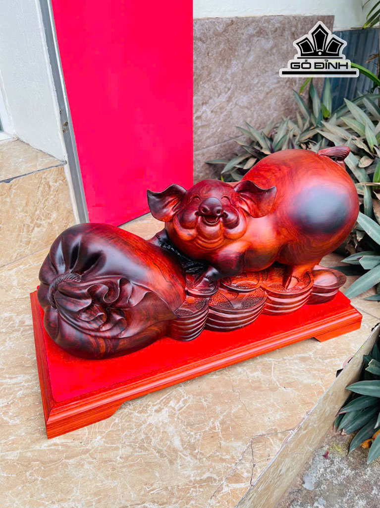 Tượng Heo Gỗ Trắc Cao 22 Ngang 45 Sâu 18 (cm) - Cả Kỷ 28 - 8kg