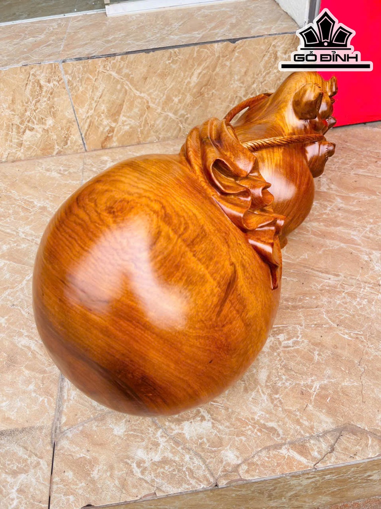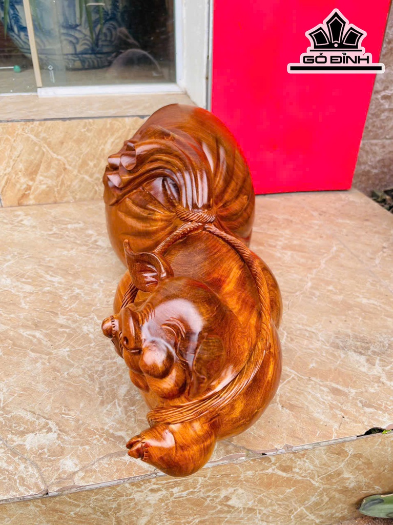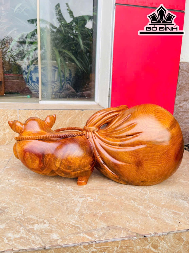 Tượng Heo Kéo Bao Tiền Gỗ Hương Cao 22 Ngang 50 Sâu 20 (cm) - 12kg