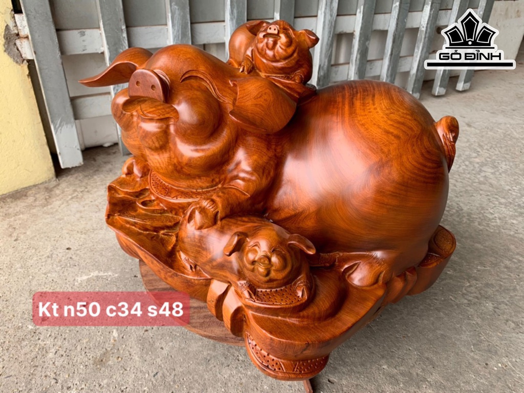 Tượng Heo Mẫu Tử Gỗ Hương Ngang 50 Cao 34 Sâu 48 (cm)