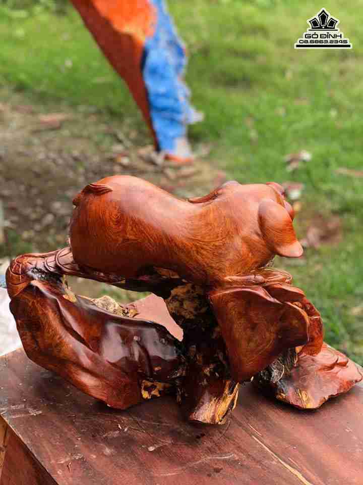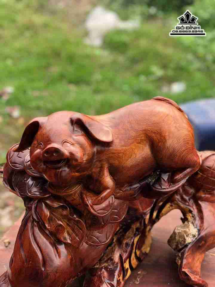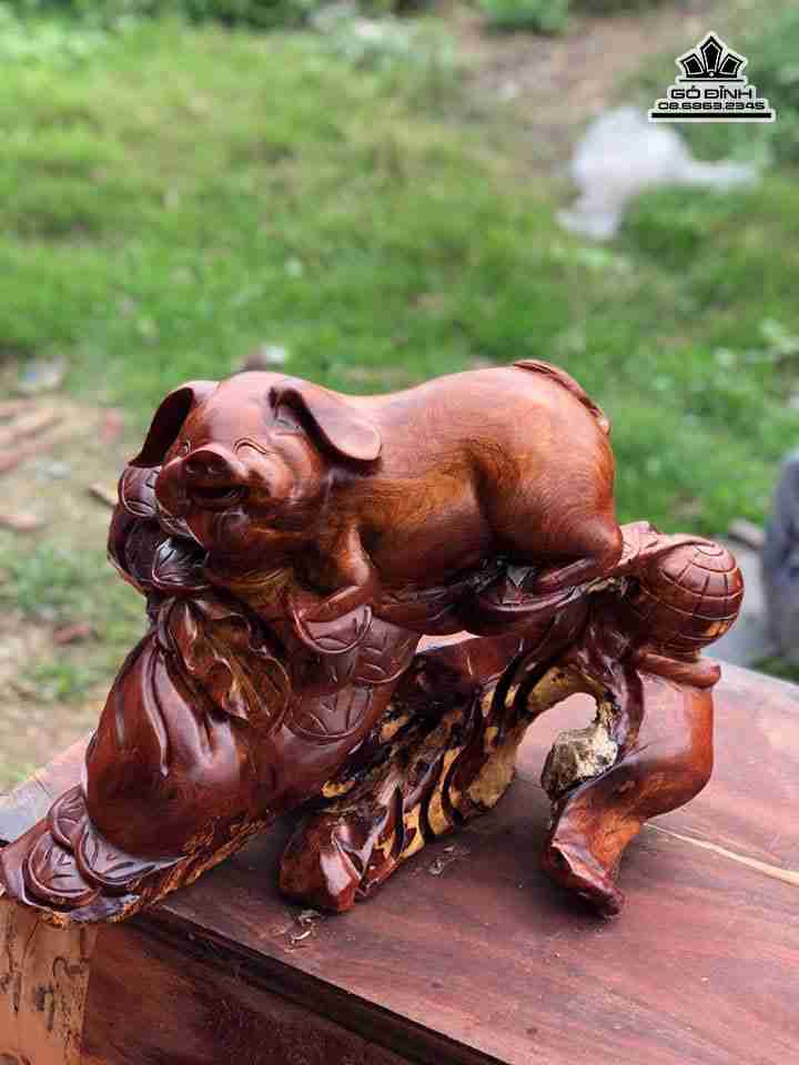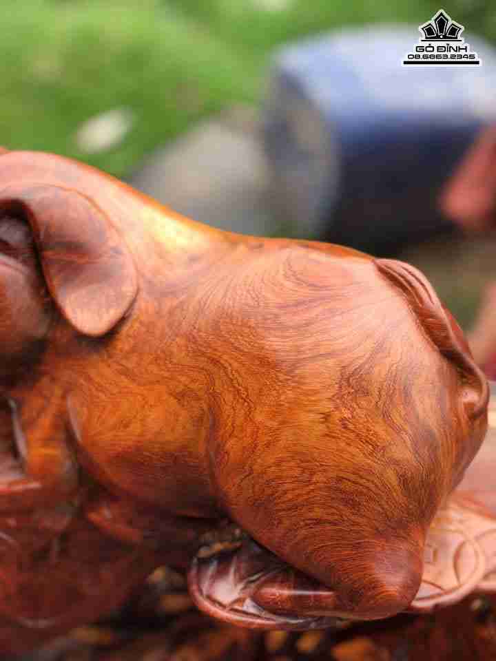Tượng Heo Ôm Tiền gỗ hương cao 34 rộng 50 sâu 27 (cm)