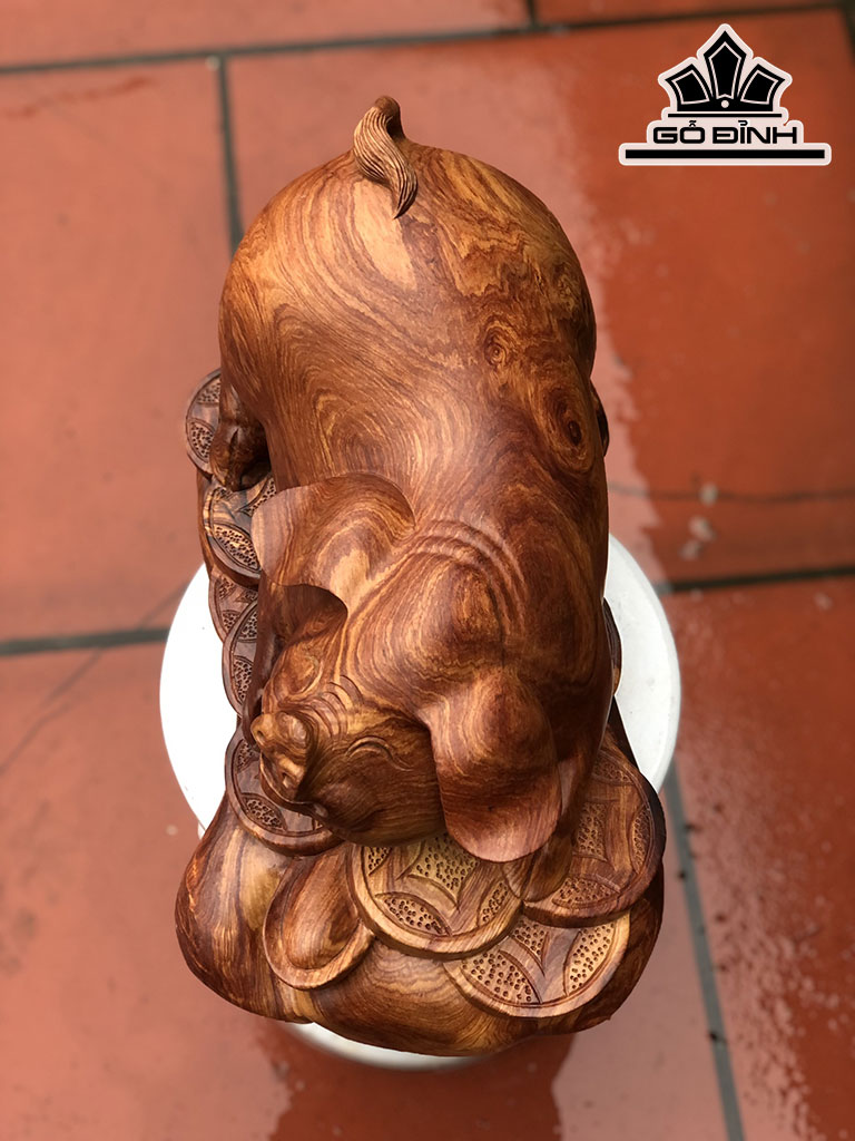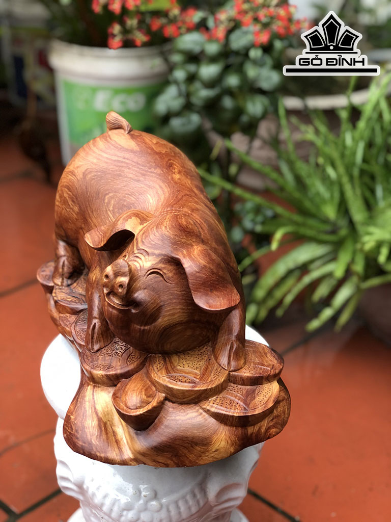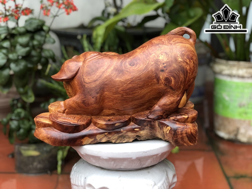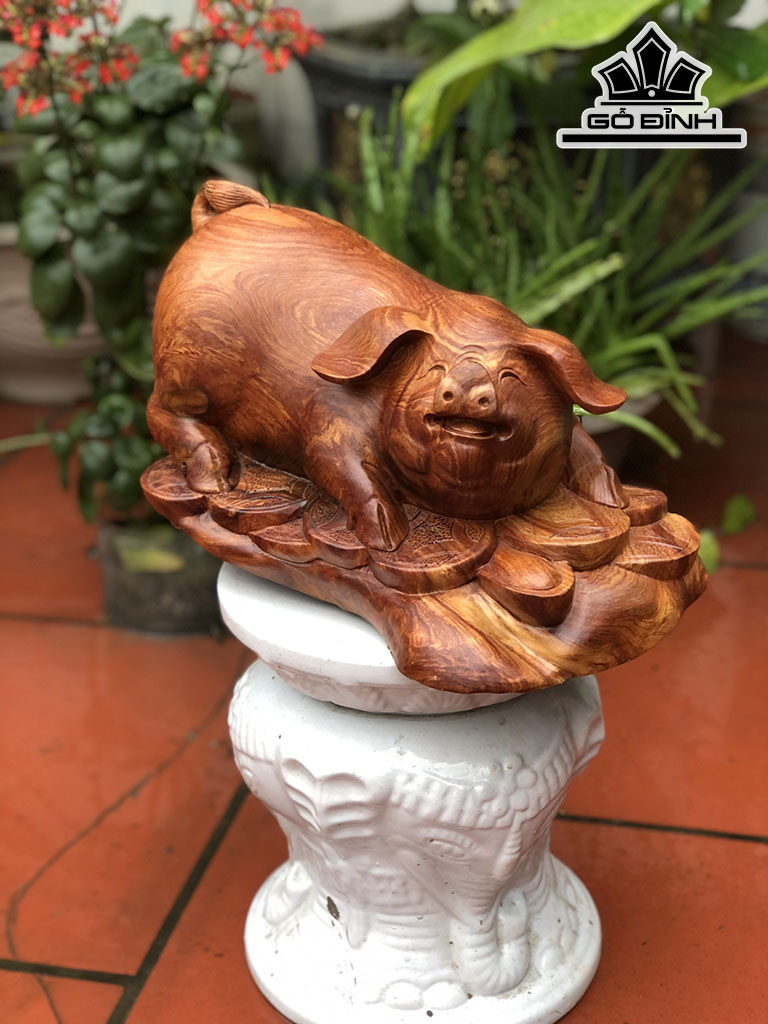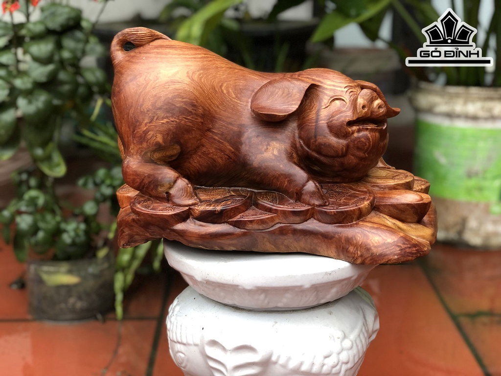 Tượng Heo Phong Thủy Gỗ Cẩm Cao 14 Ngang 36 Sâu 22 (cm)