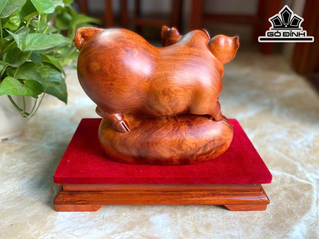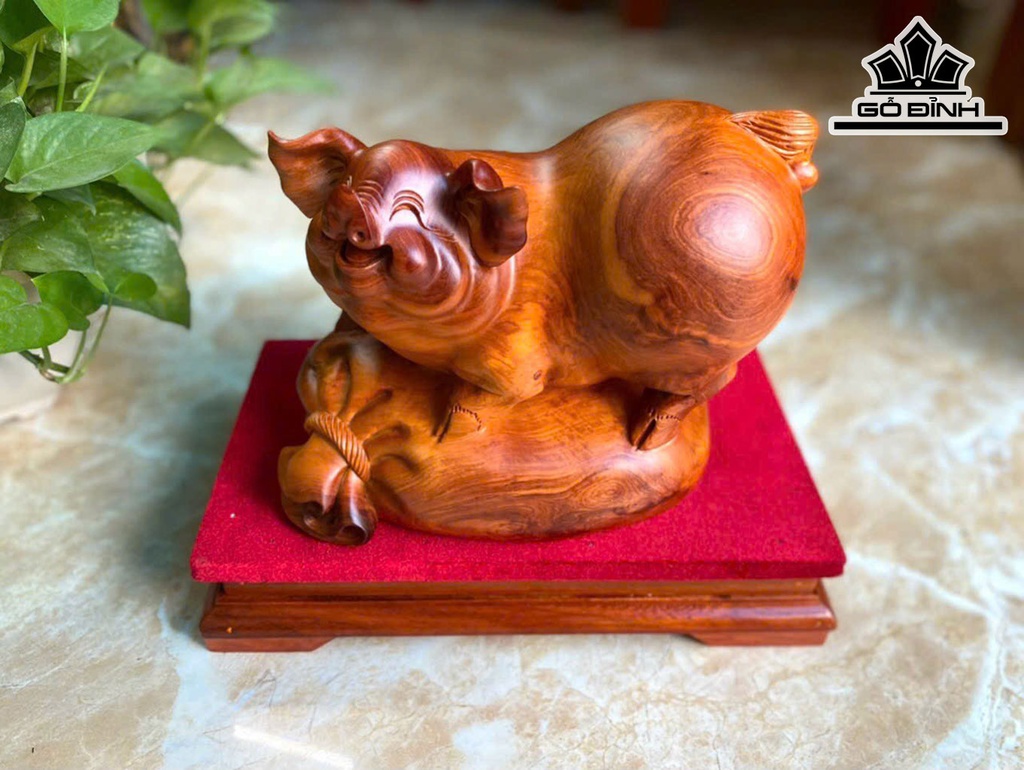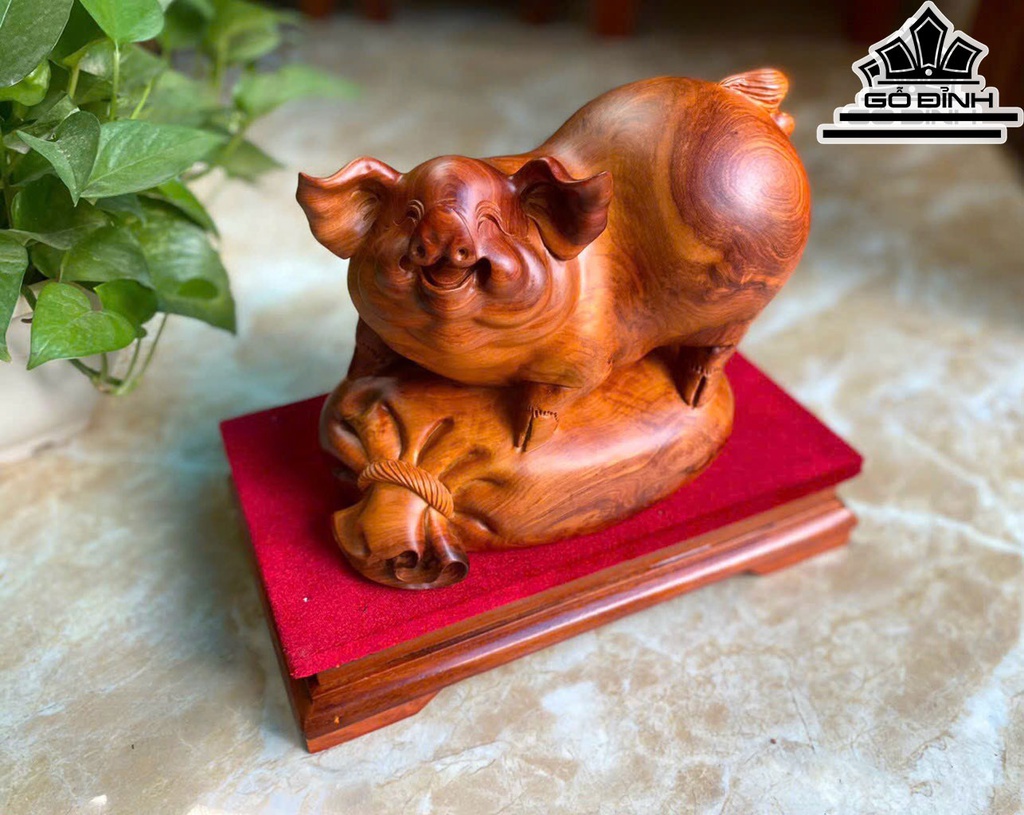 Tượng Heo Phong Thủy Gỗ Hương Cao 25 Ngang 24 Sâu 14 (cm)