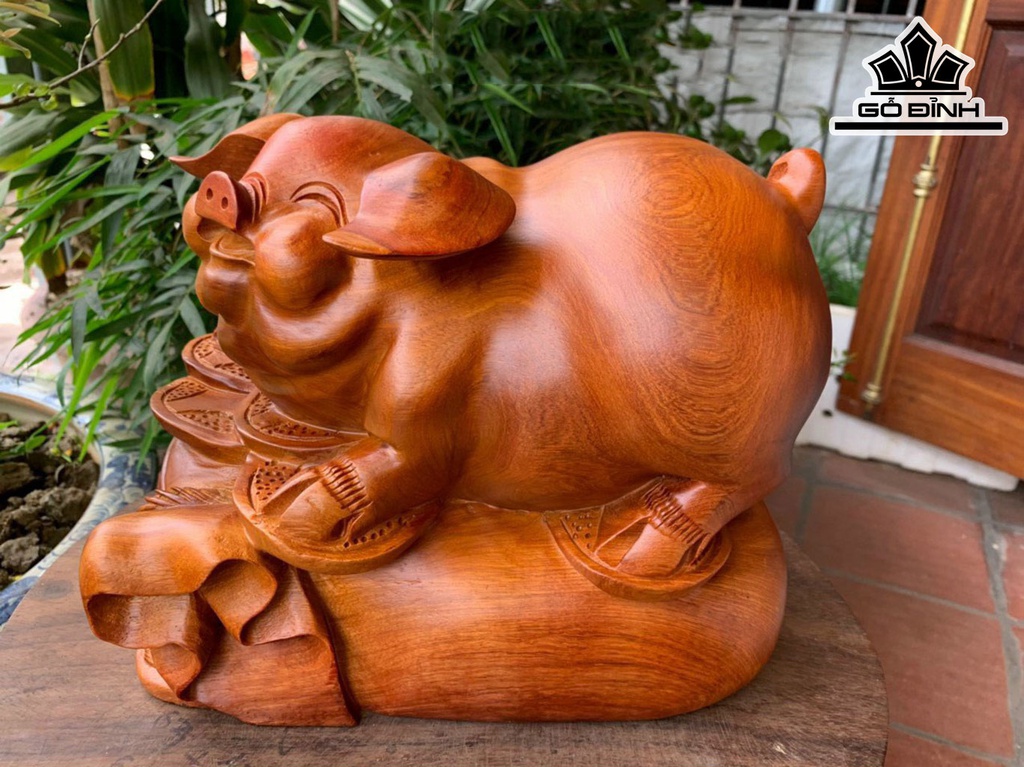 Tượng Heo Phong Thủy Gỗ Hương Ngang 28 Cao 23 Sâu 20 (cm)