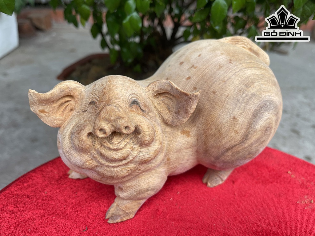 Tượng Heo Phong Thủy Gỗ Ngọc Am Cao 10 Ngang 19 Sâu 11 (cm)