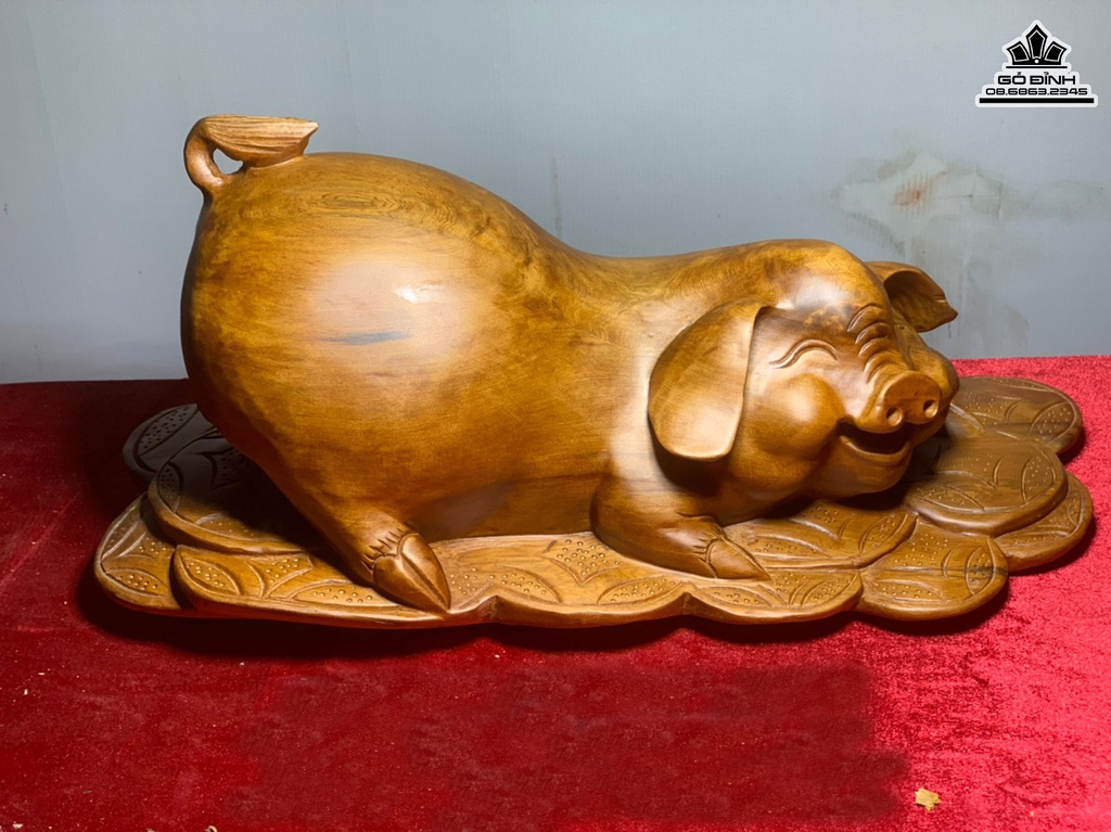 Tượng Heo Phong Thủy Gỗ Ngọc Am Cao 23 Ngang 44 Sâu 20 (cm)