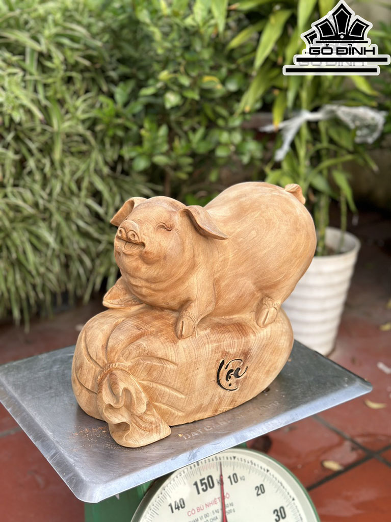 Tượng Heo Phong Thủy Gỗ Ngọc Am Cao 26 Ngang 33 Sâu 18 (cm)