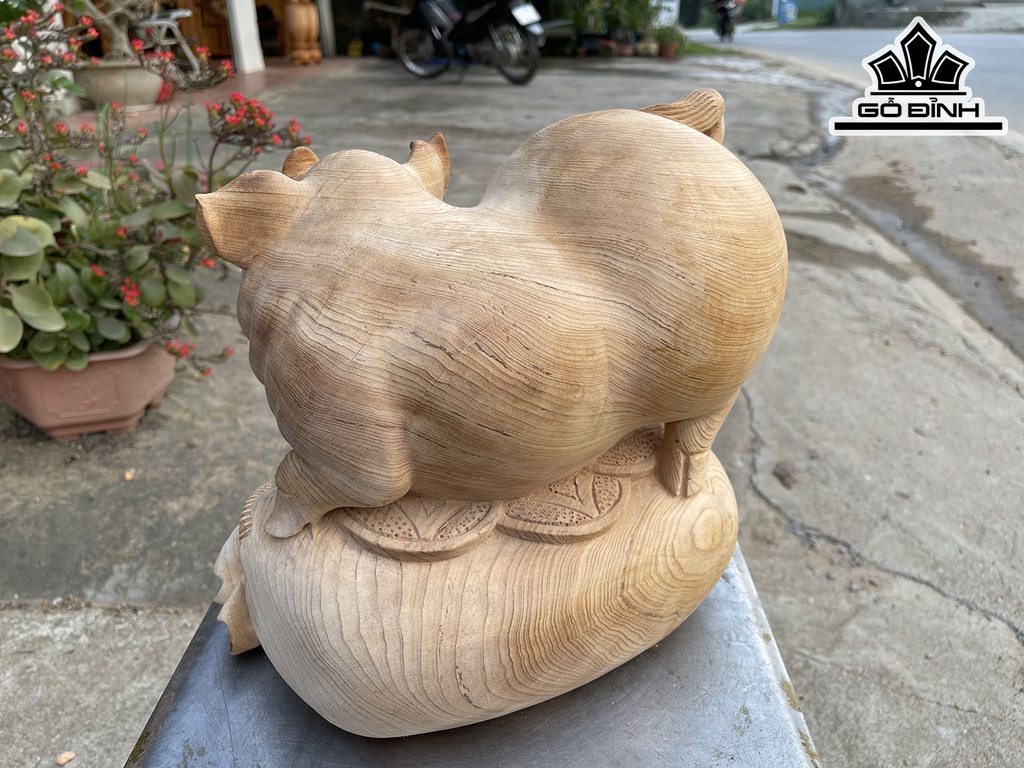 Tượng Heo Phong Thủy Gỗ Ngọc Am Cao 29 Ngang 27 Sâu 19 (cm)