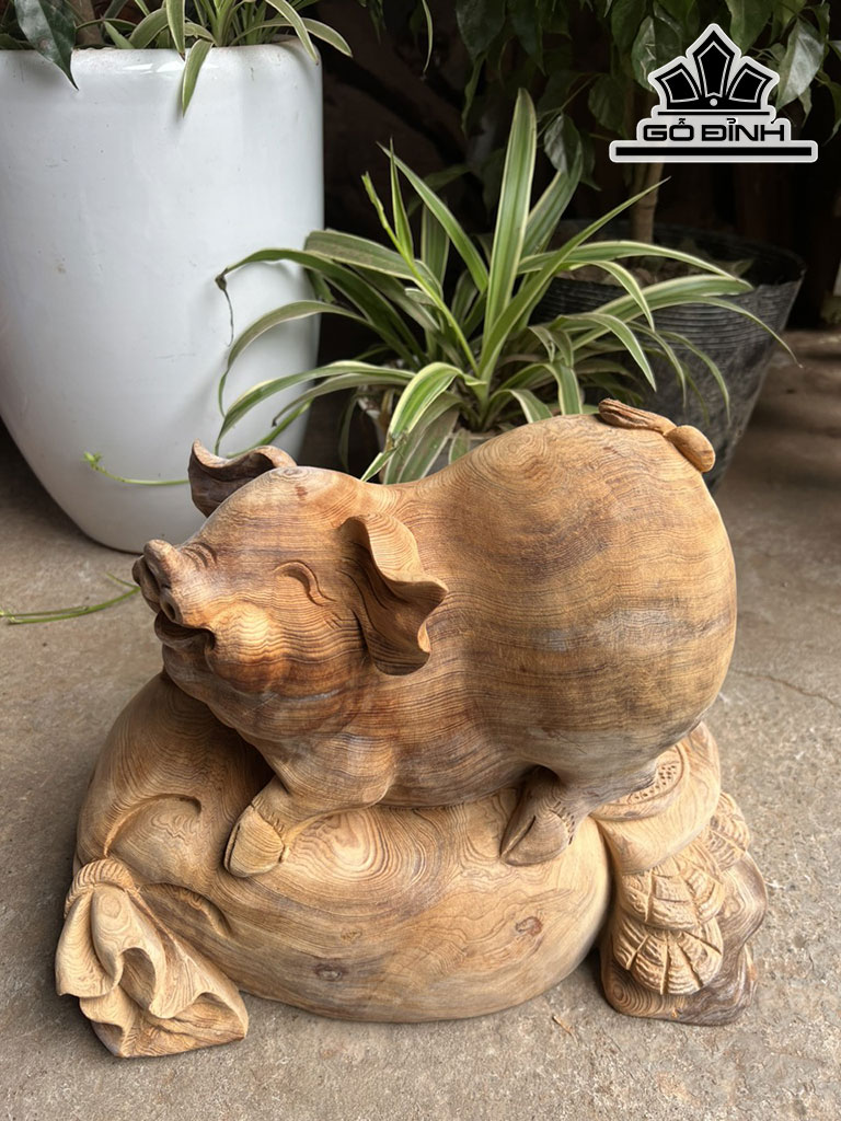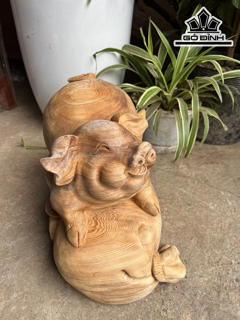 Tượng Heo Phong Thủy Gỗ Ngọc Am Cao 29 Ngang 38 Sâu 24 (cm)