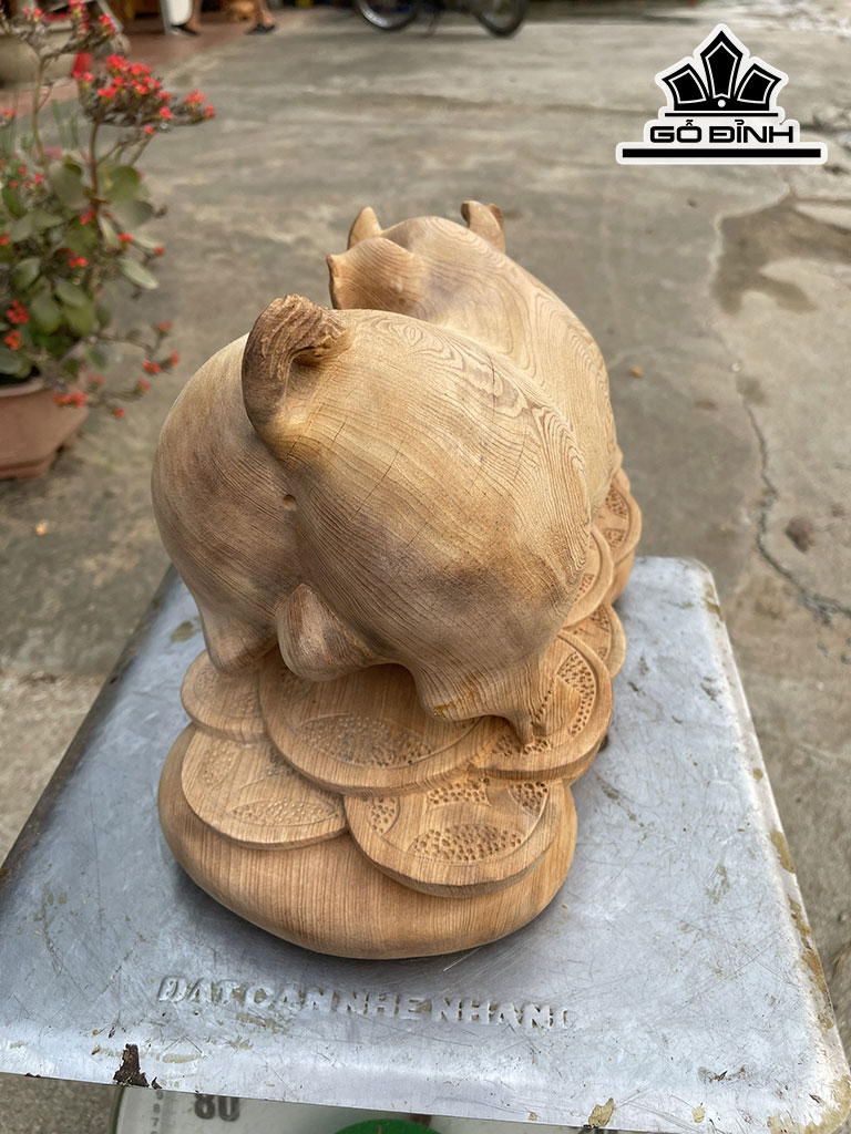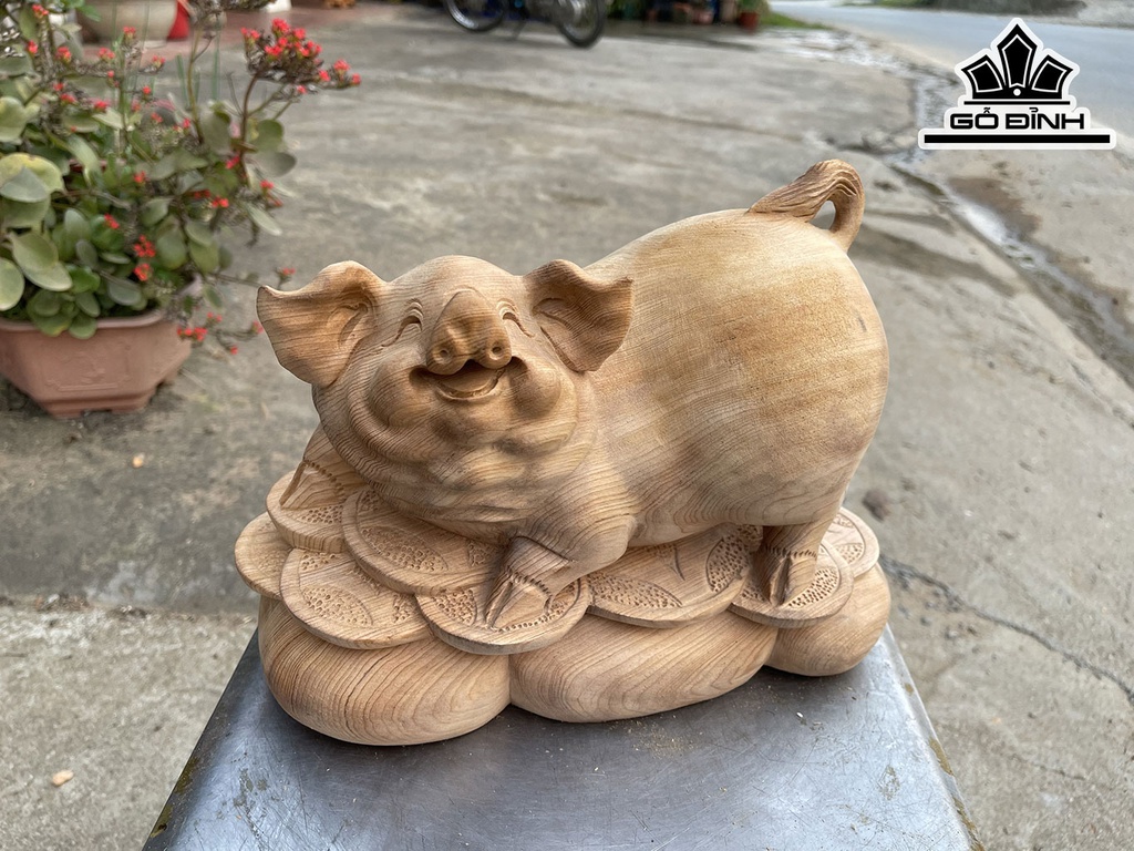 Tượng Heo Phong Thủy Gỗ Ngọc Am Cao 32 Ngang 23 Sâu 18 (cm)