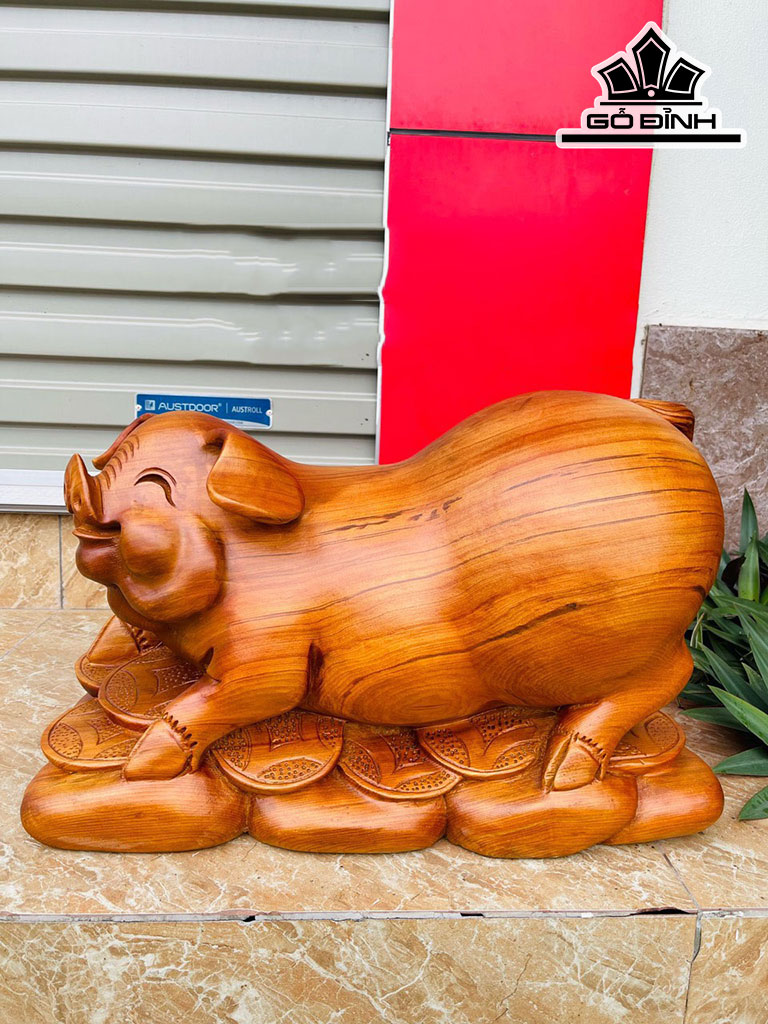 Tượng Heo Phong Thủy Gỗ Ngọc Am Cao 32 Ngang 50 Sâu 25 (cm)