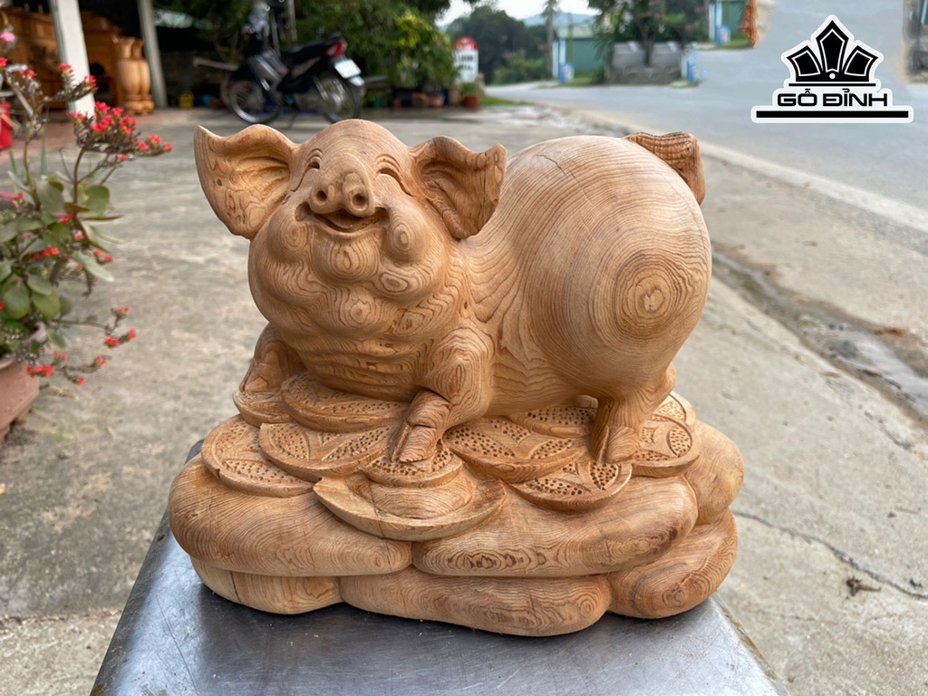 Tượng Heo Phong Thủy Gỗ Ngọc Am Cao 35 Ngang 26 Sâu 20 (cm)