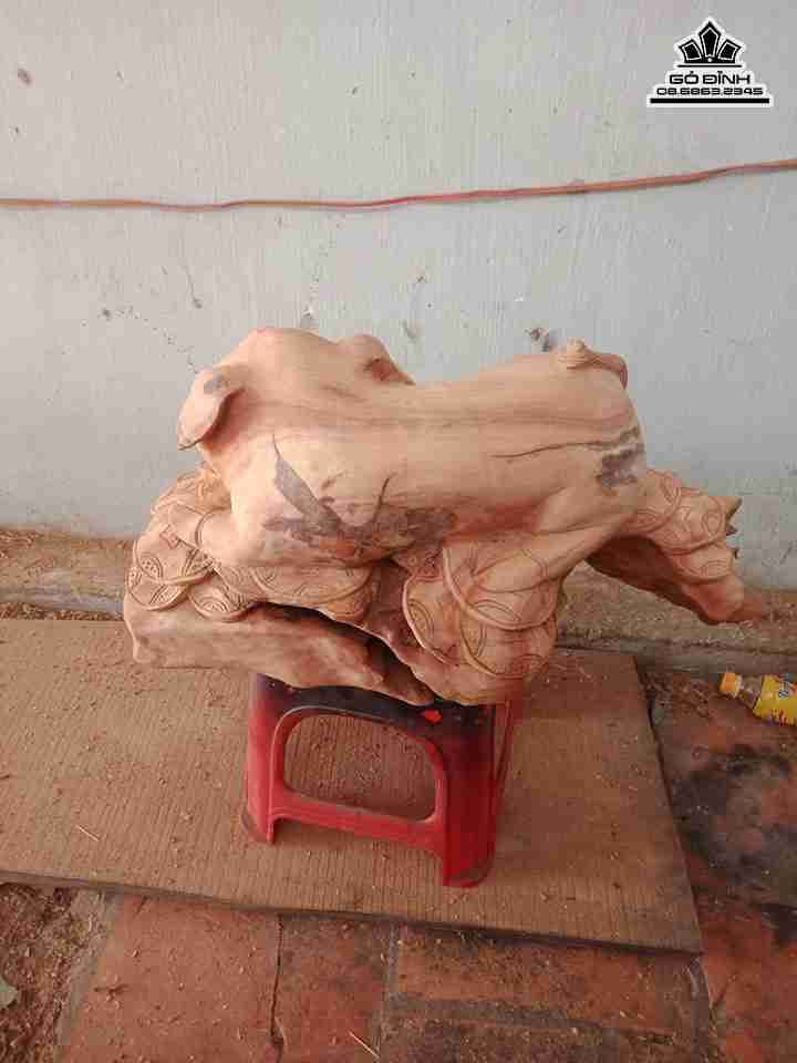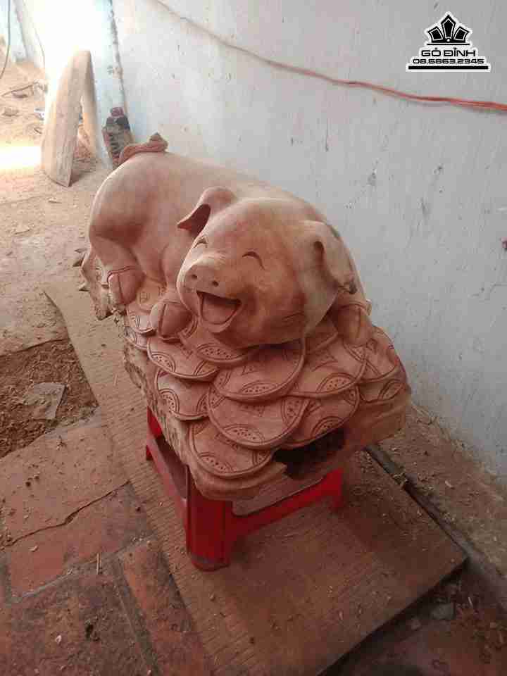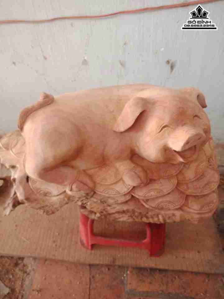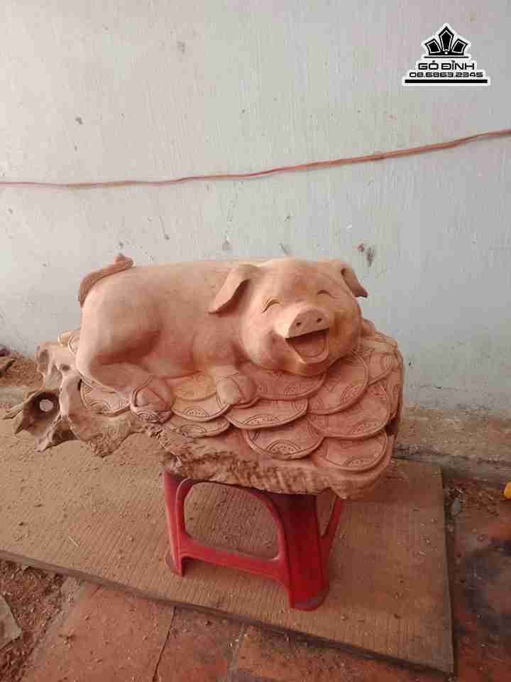 Tượng heo phú quý gỗ xá xị dài 60 rộng 29 dày 25 (cm)
