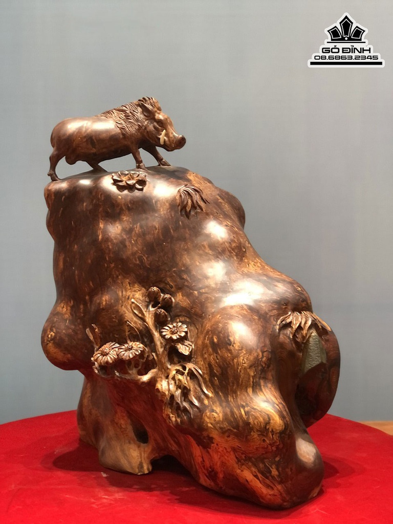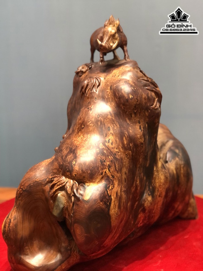 Tượng Heo Rừng Gỗ Nu Cẩm Cao 55 Ngang 50 Sâu 30 (cm)