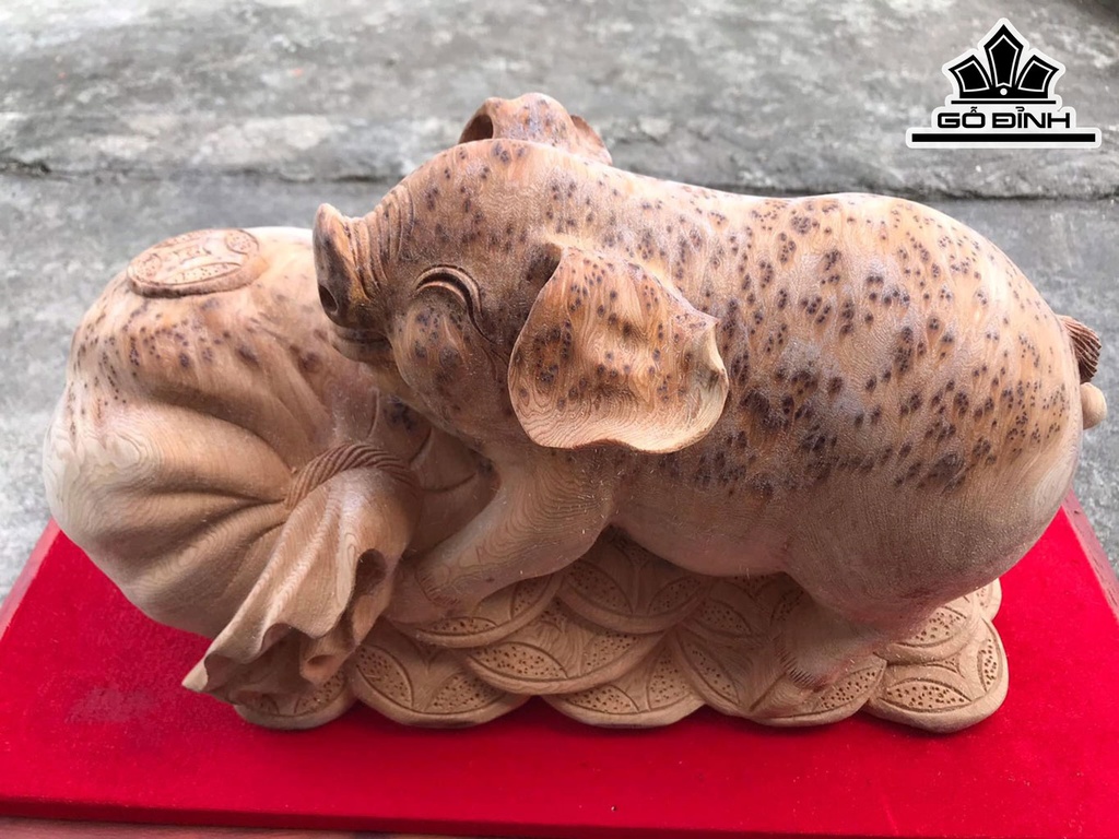 Tượng Heo Tài Lộc Gỗ Nu Ngọc Am Cao 20 Ngang 35 Sâu 20 (cm)