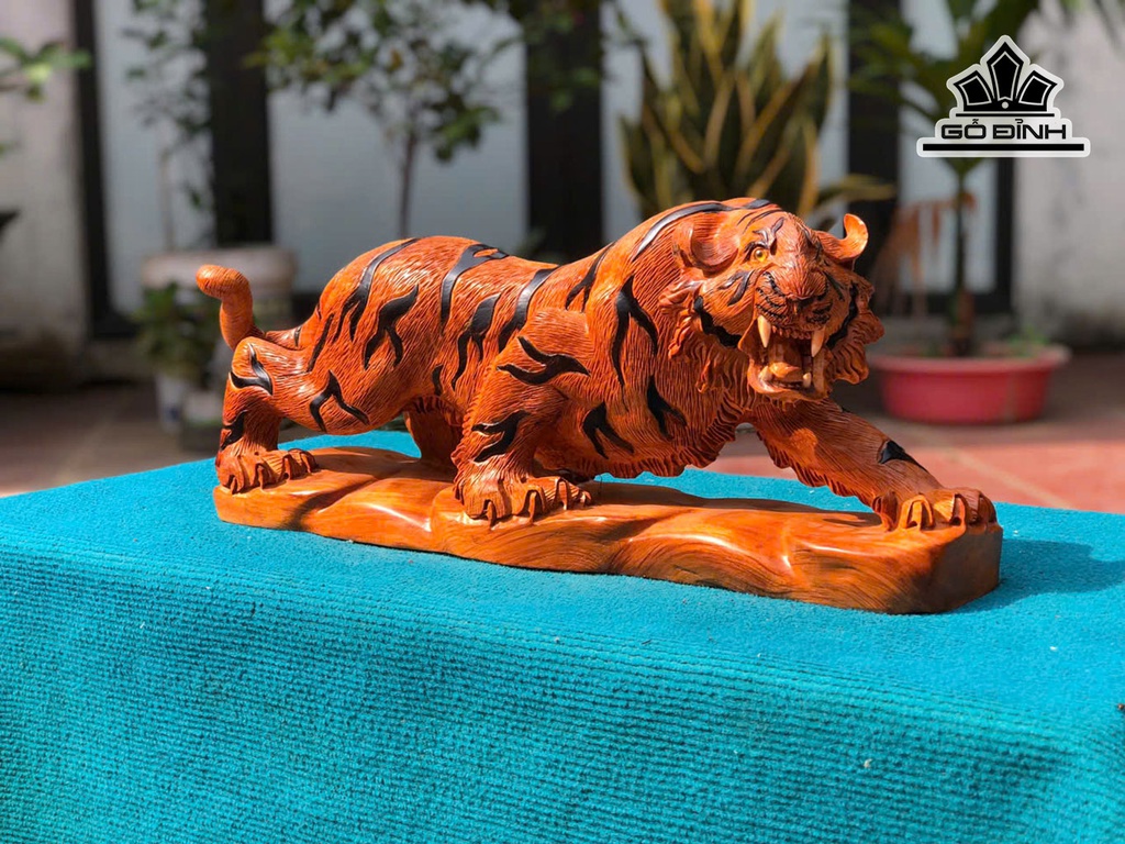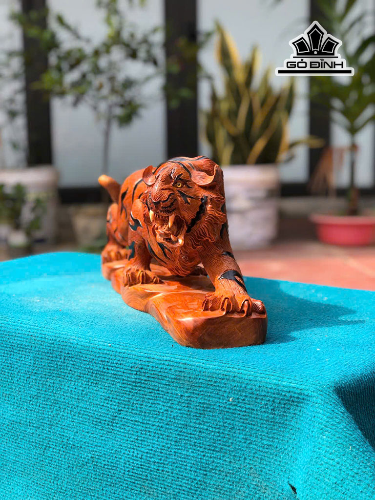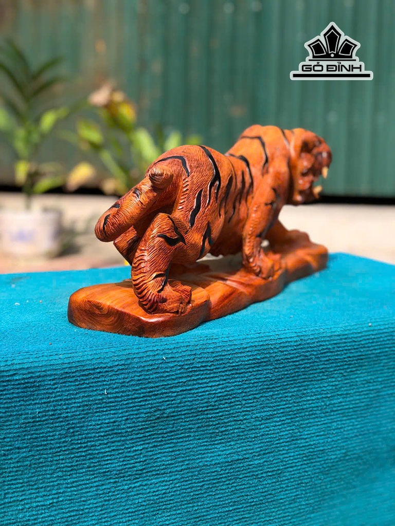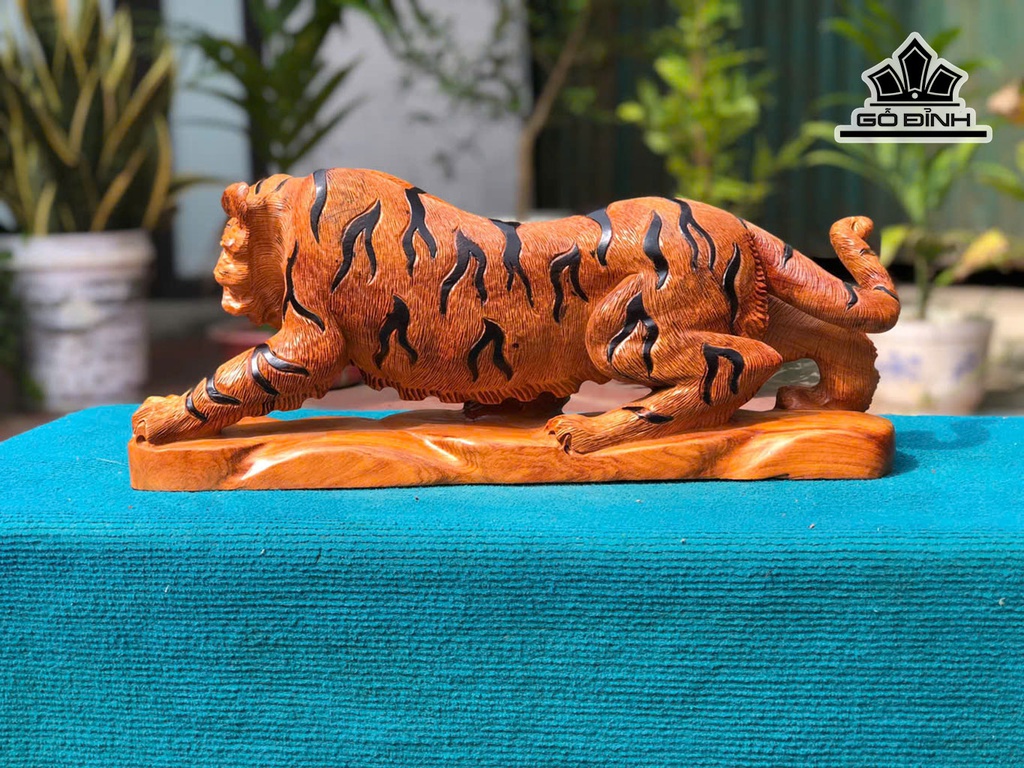 Tượng Hổ Phong Thủy Gỗ Hương Cao 22 Ngang 52 Sâu 14 (cm)