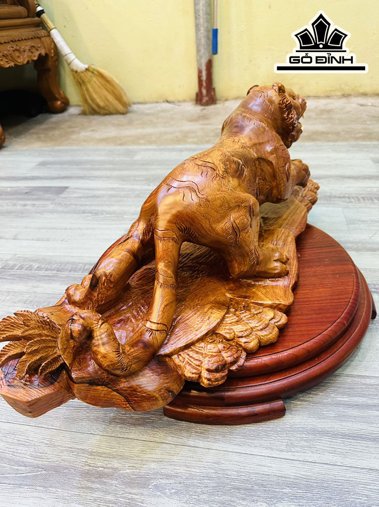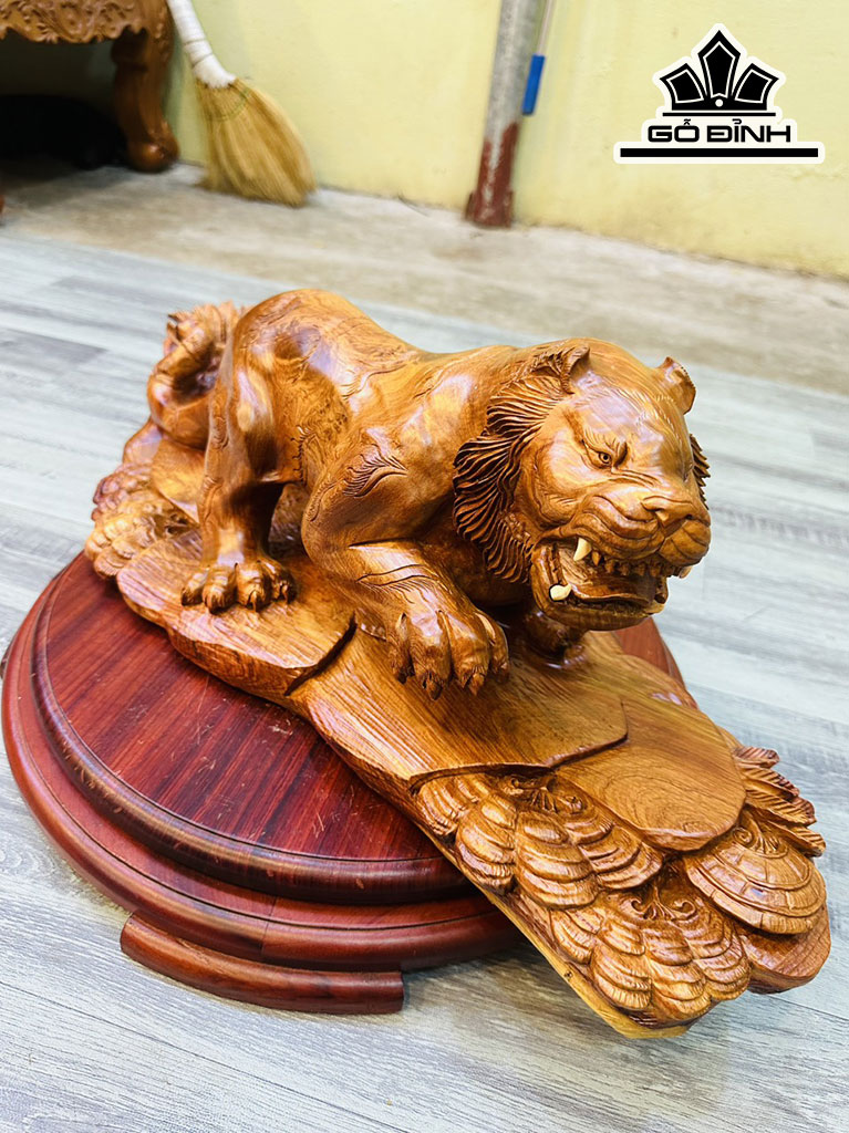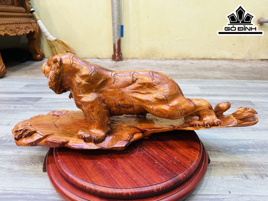 Tượng Hổ Phong Thủy Gỗ Hương Cao 25 Ngang 68 Sâu 24 (cm)