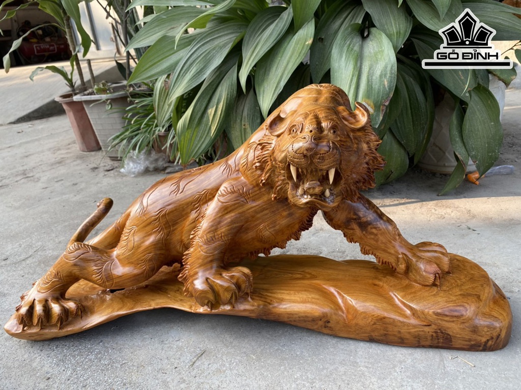 Tượng Hổ Phong Thủy Gỗ Hương Cao 30 Ngang 67 Sâu 26 (cm)